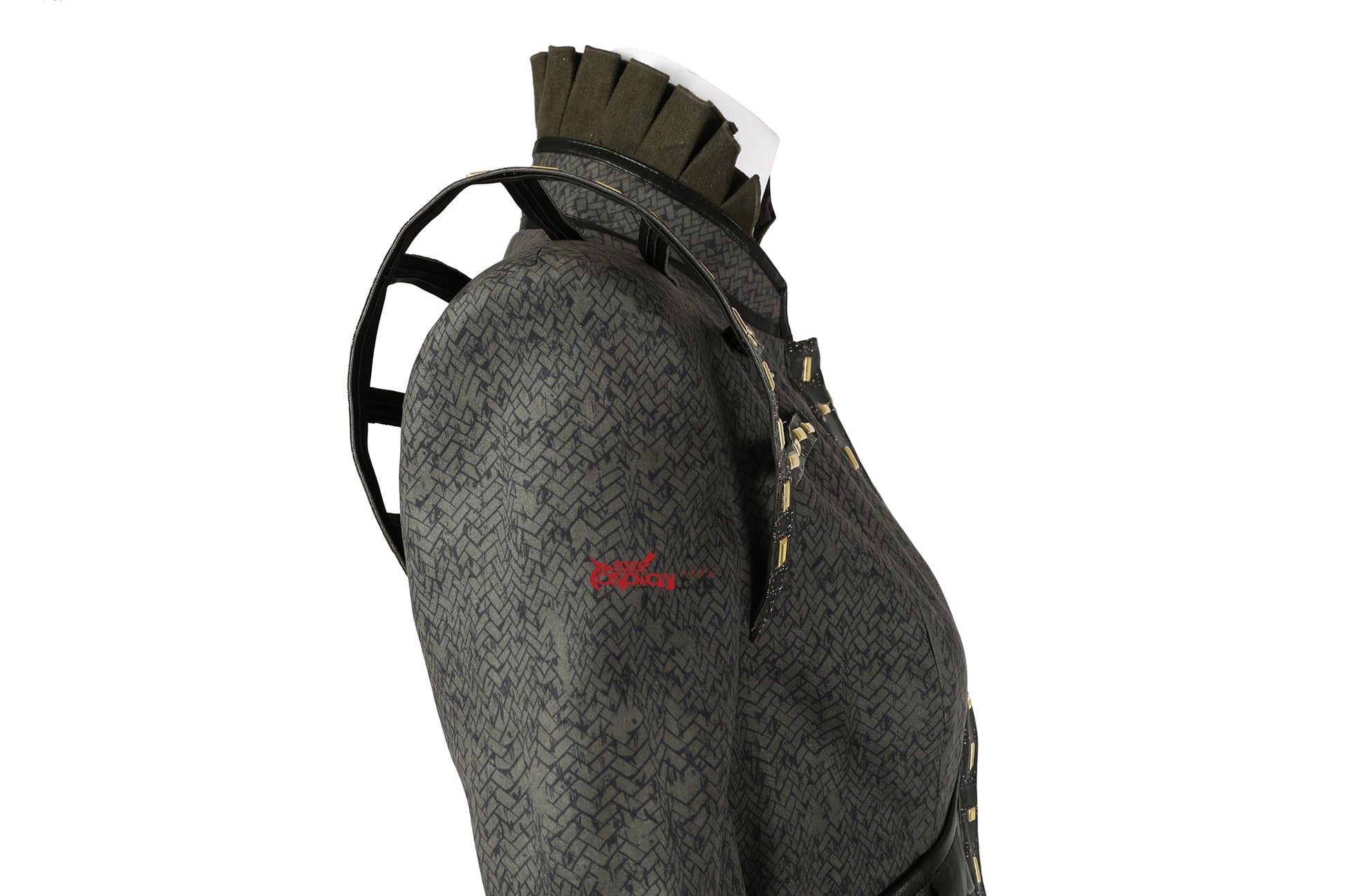 Components: Armored trench coat, Reinforced combat pants, Kree insignia wrist guards.