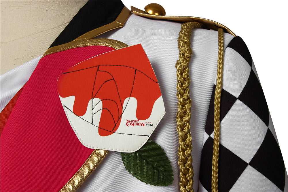 Components: Tailored jacket, Formal pants, Embroidered vest, Card-themed ornament, Decorative waist sash, Graphic T-shirt, Shoulder cord, Boutonniere, Chest badge, Waist sash.