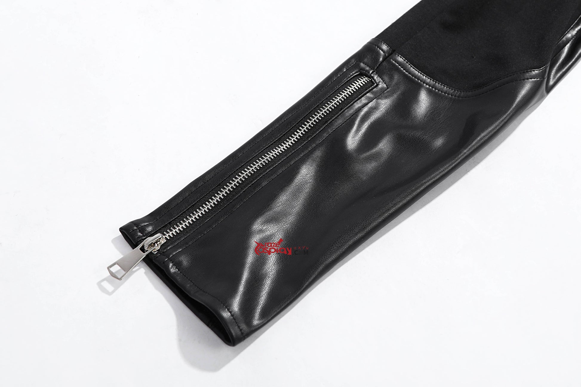 Pants: Stretch PU leather, stretch knit fabric, non-stretch thick lambskin-textured leather.