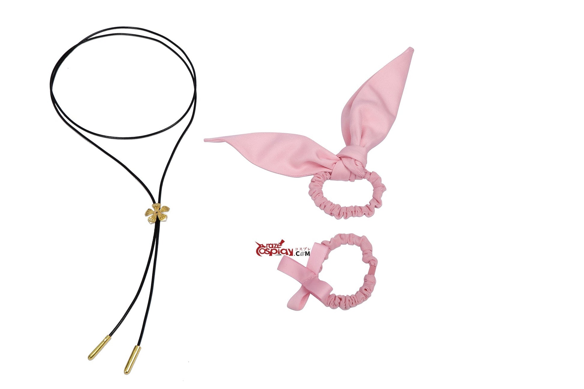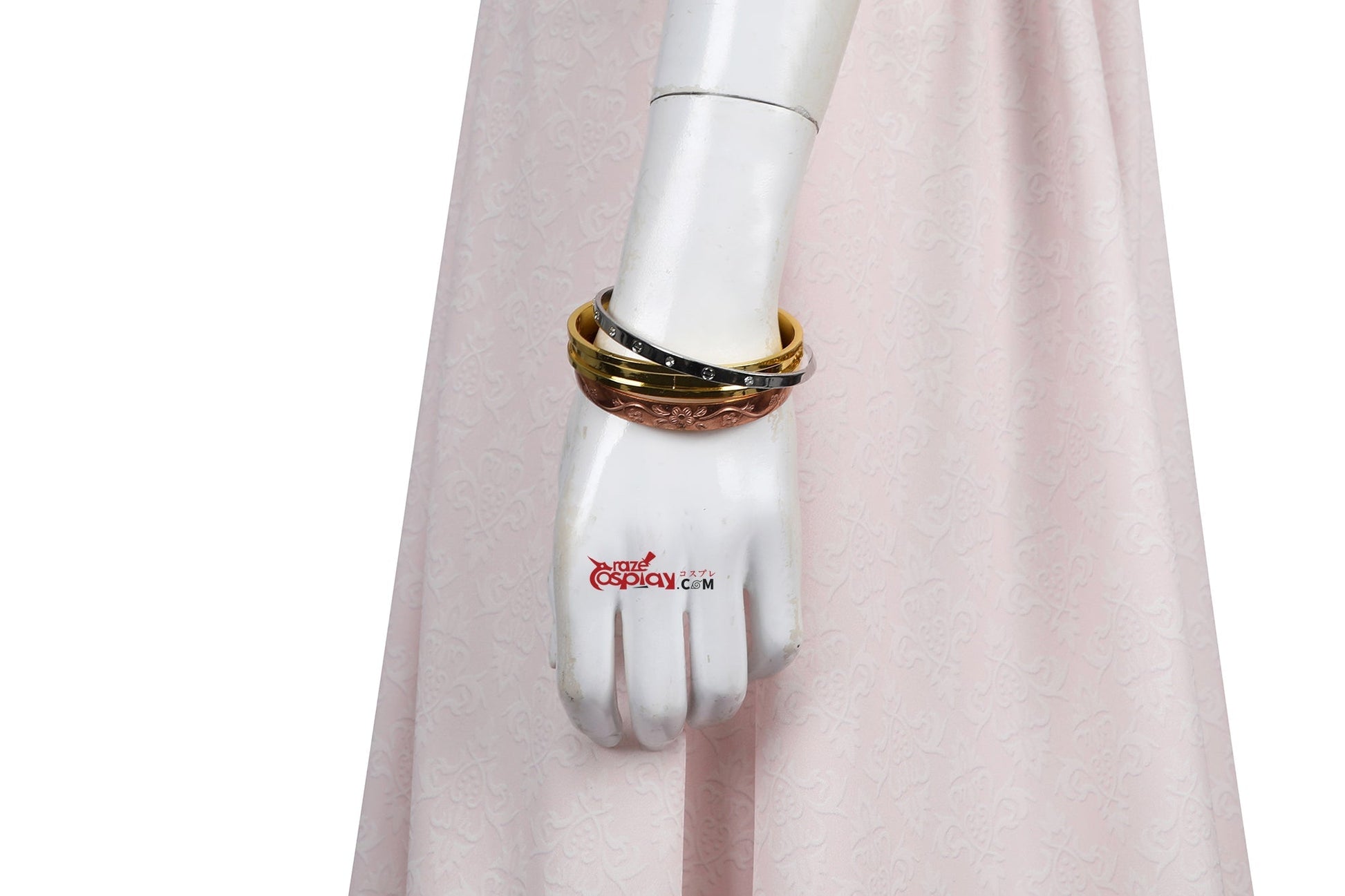 Embroidered blouse, Layered dress, Bracelet set, Pendant necklace, Lily-themed hairpins*2