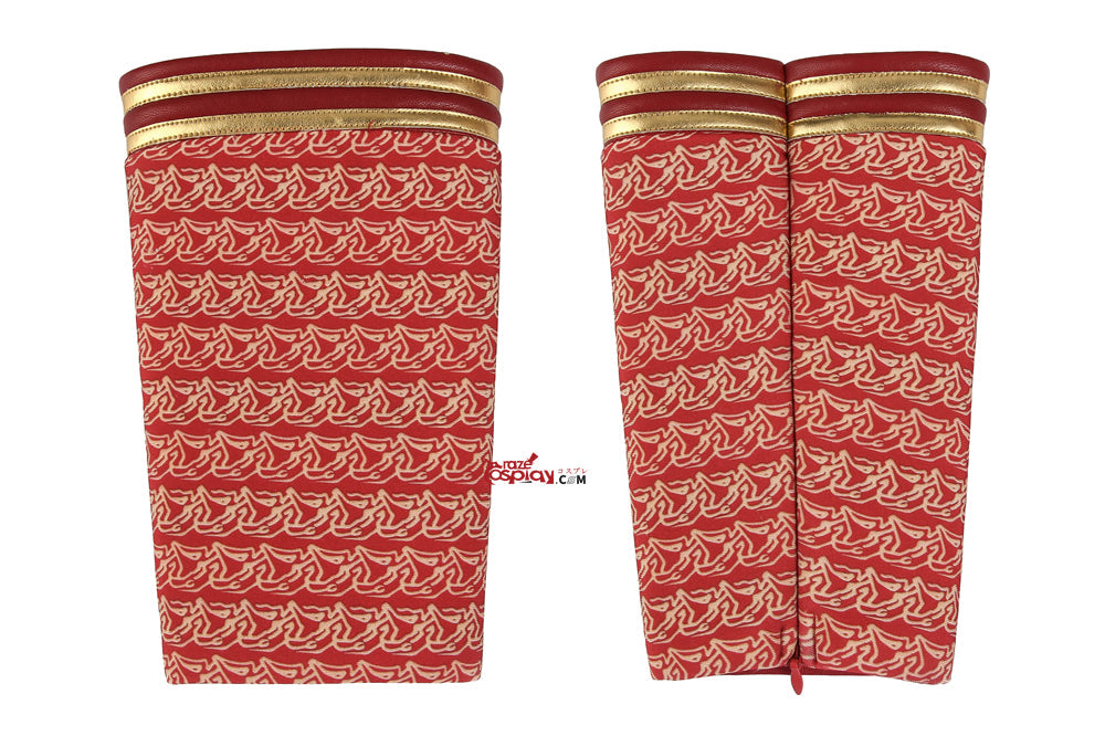 Material: Glossy spandex (stretch), non-stretch soft wool, red Nivia leather (slight stretch), blue spandex waistband (stretch).