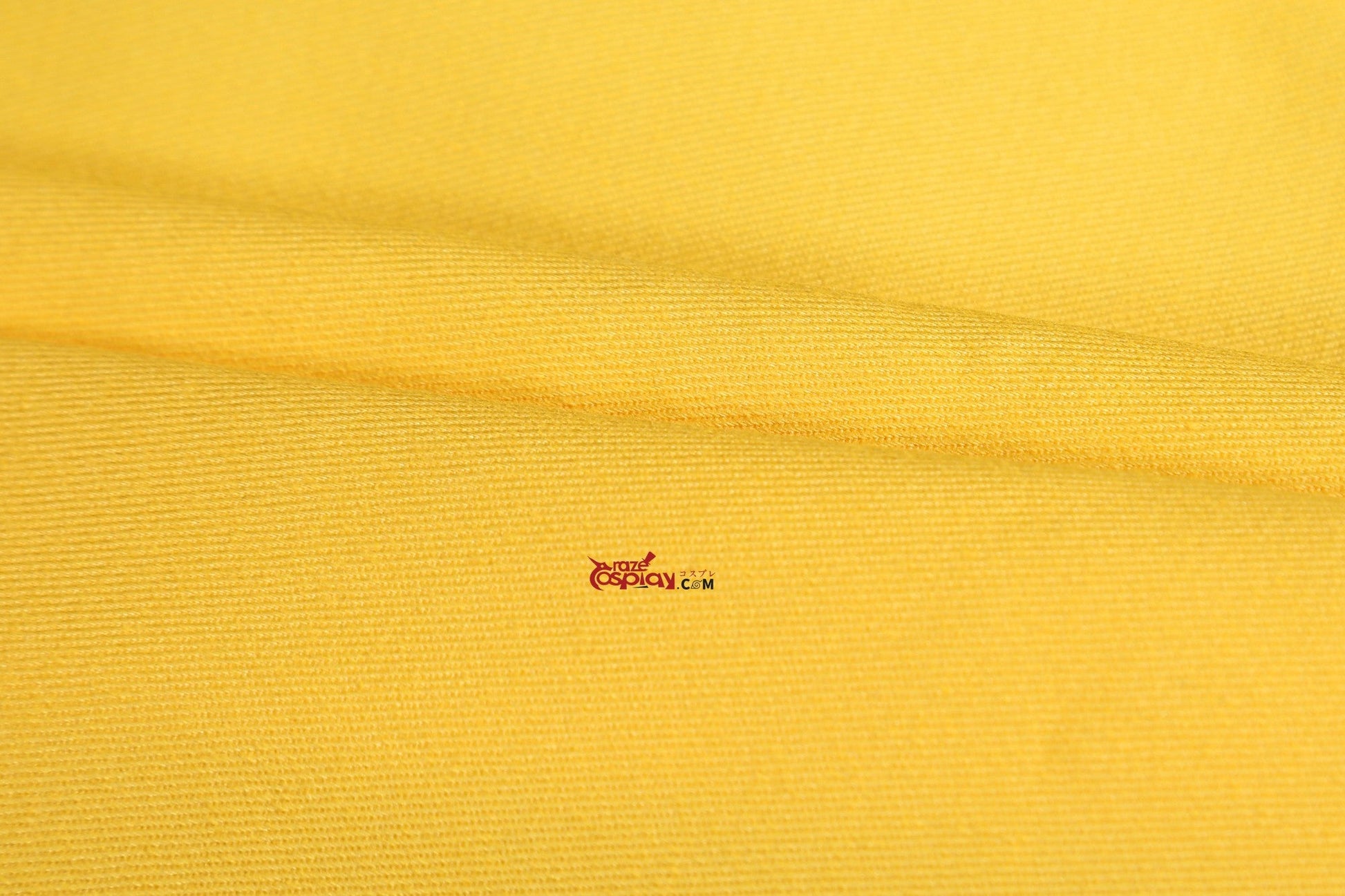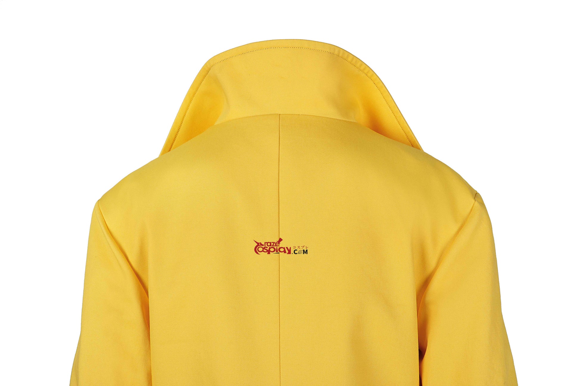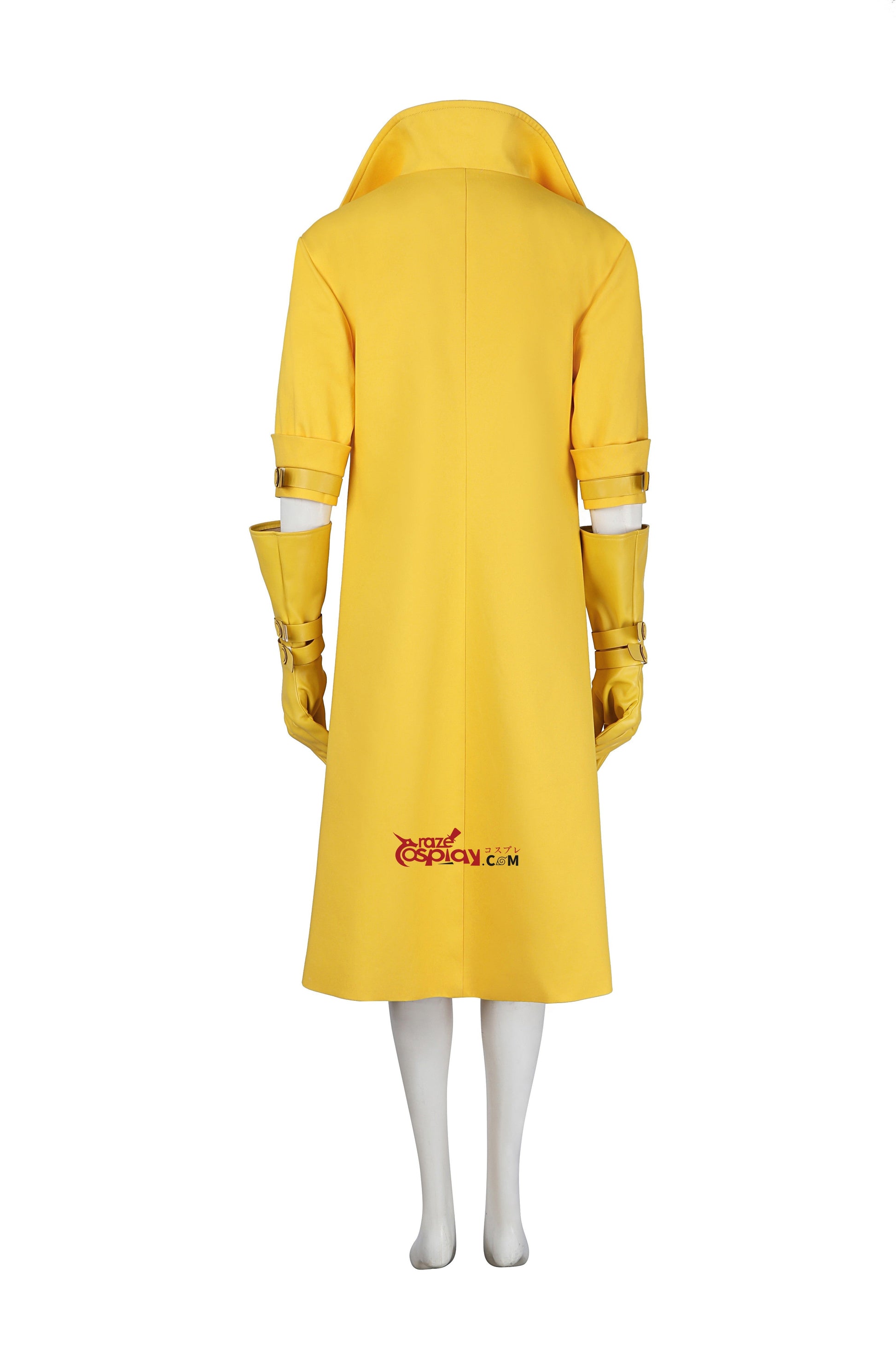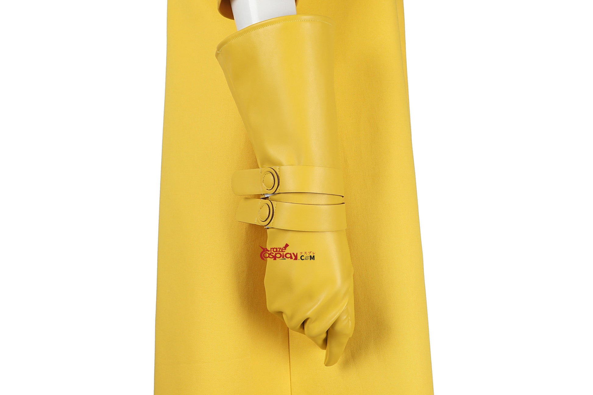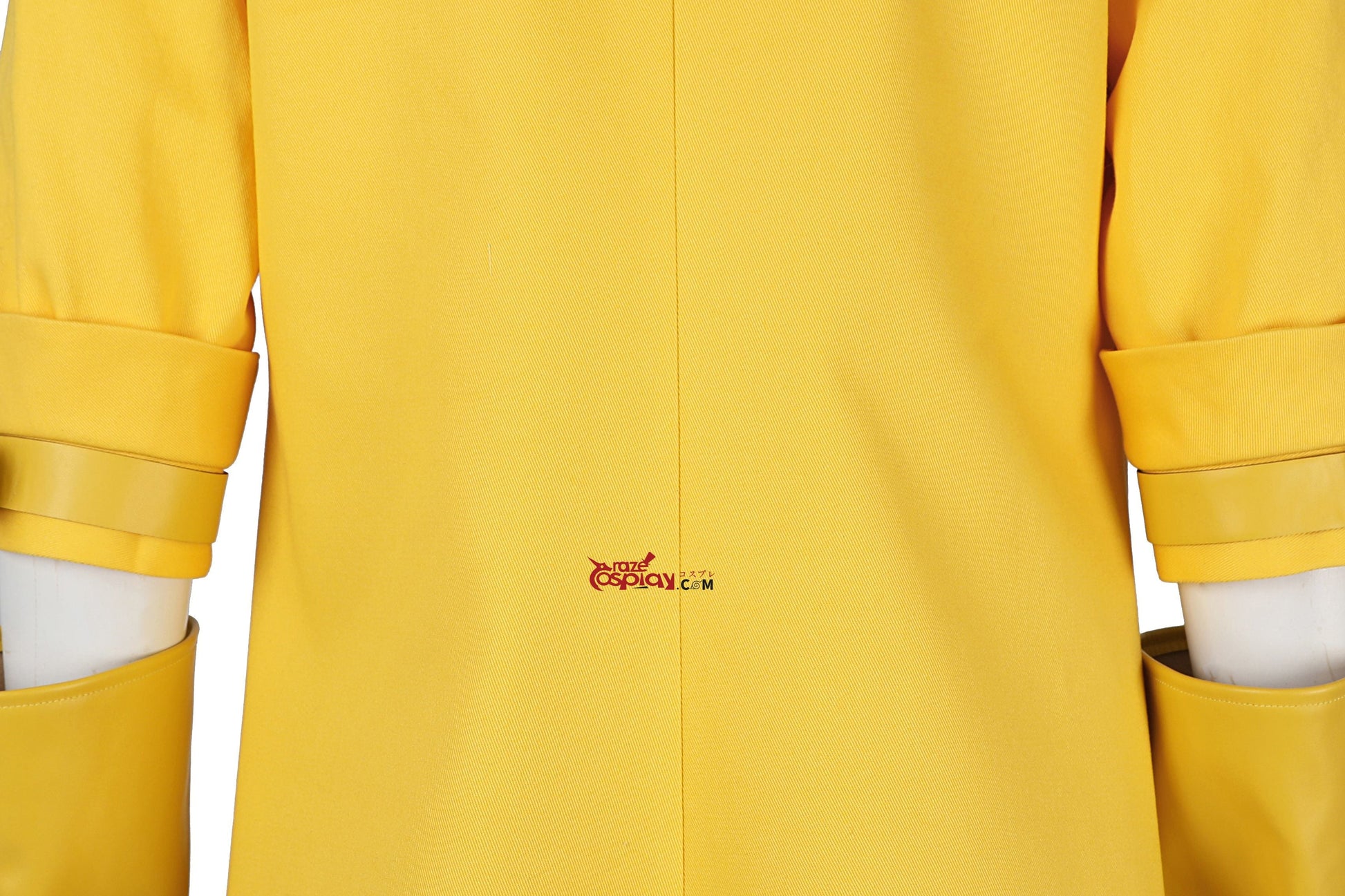 Components: Iconic yellow trench coat, Stretch-knit base top, High-waisted shorts, Utility belt, Retro sunglasses, PU leather gloves, Sparkling earrings.