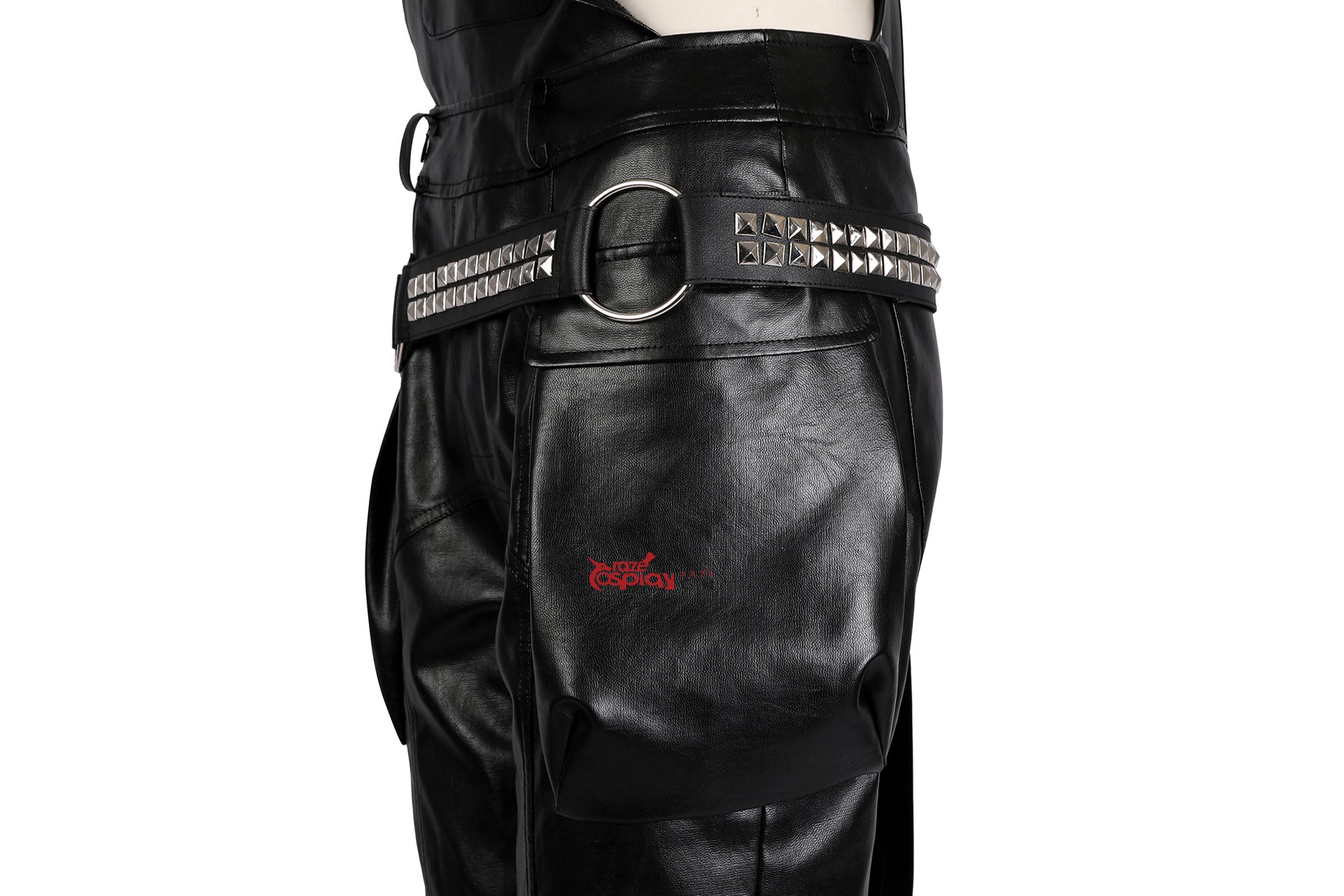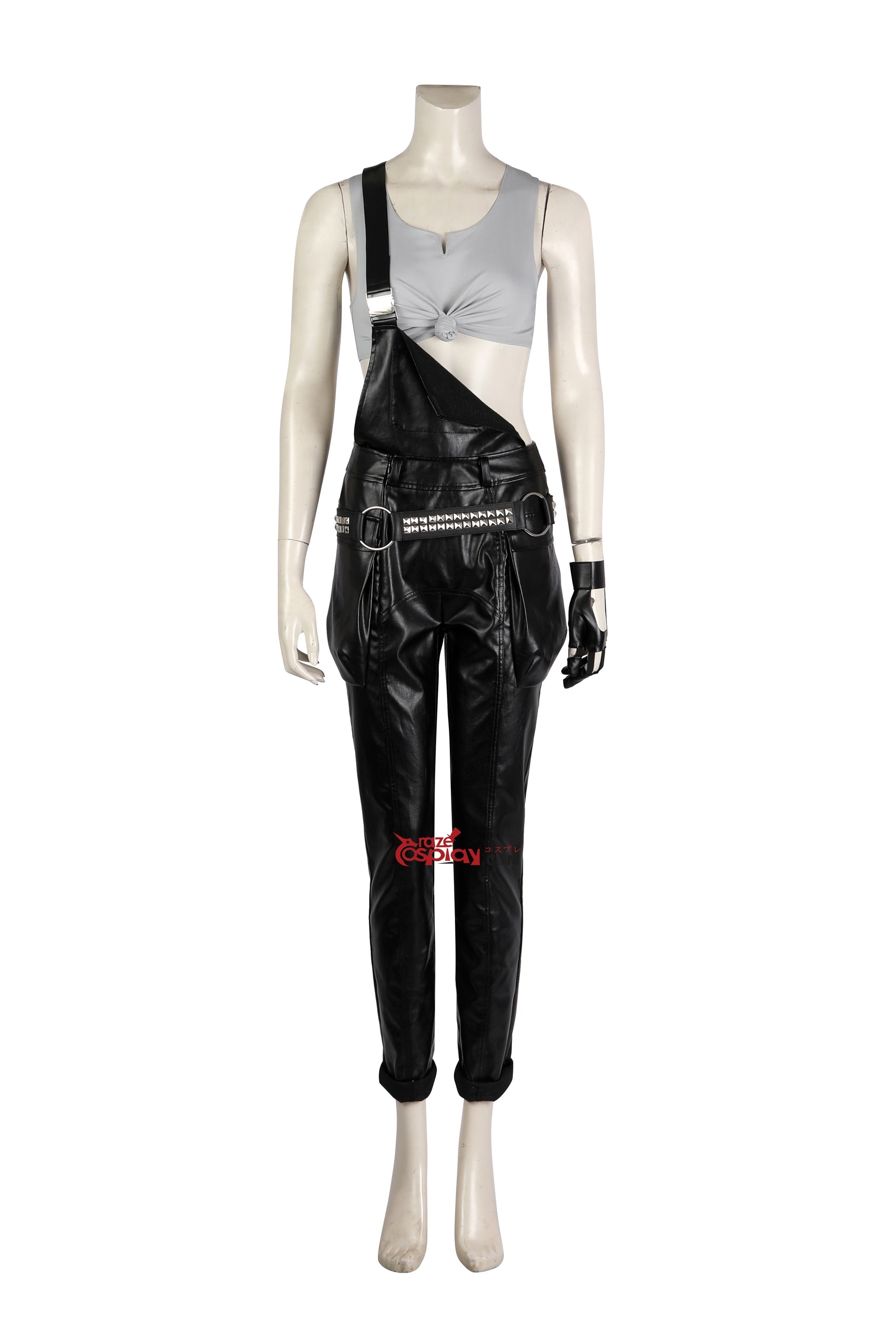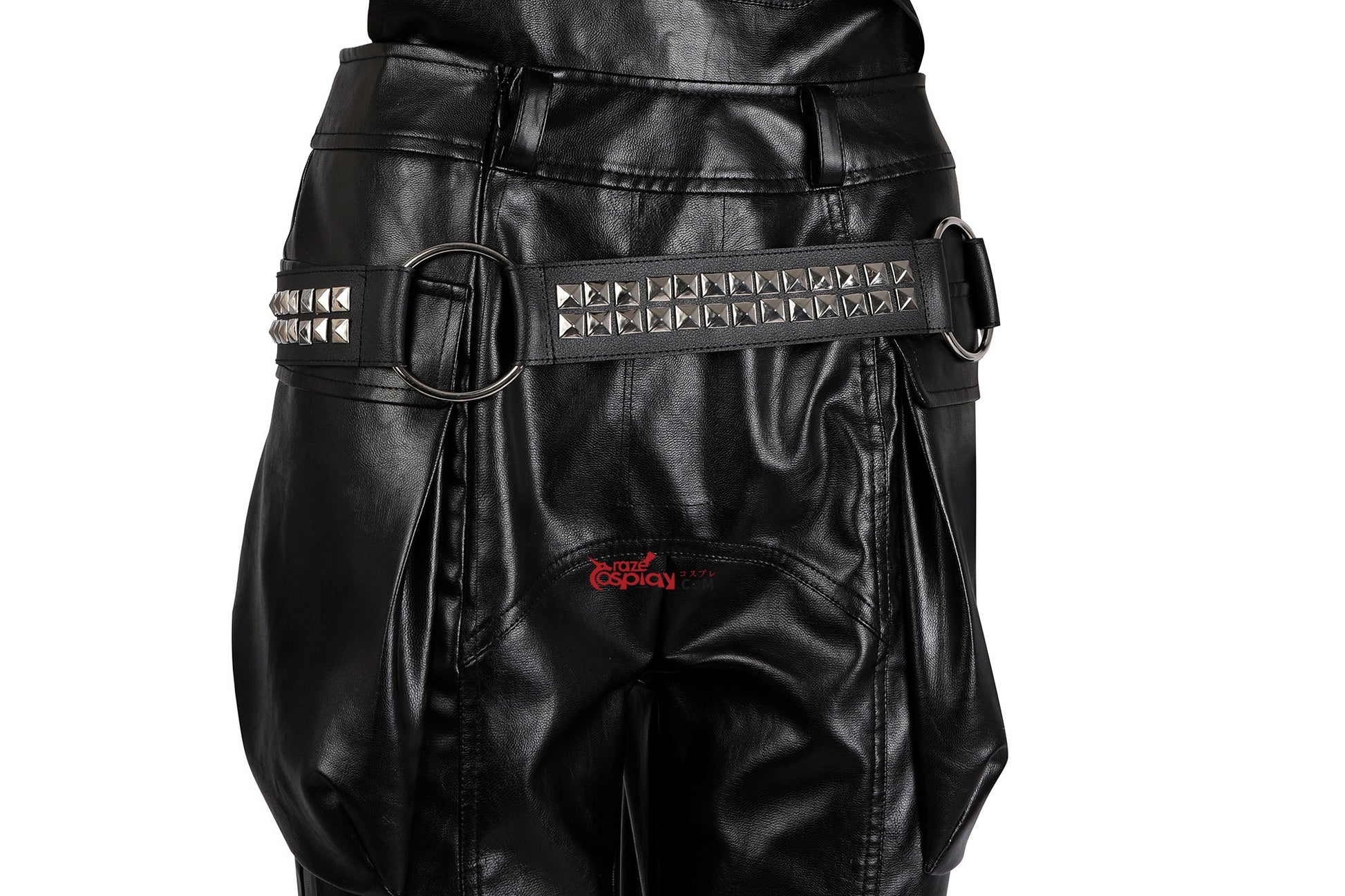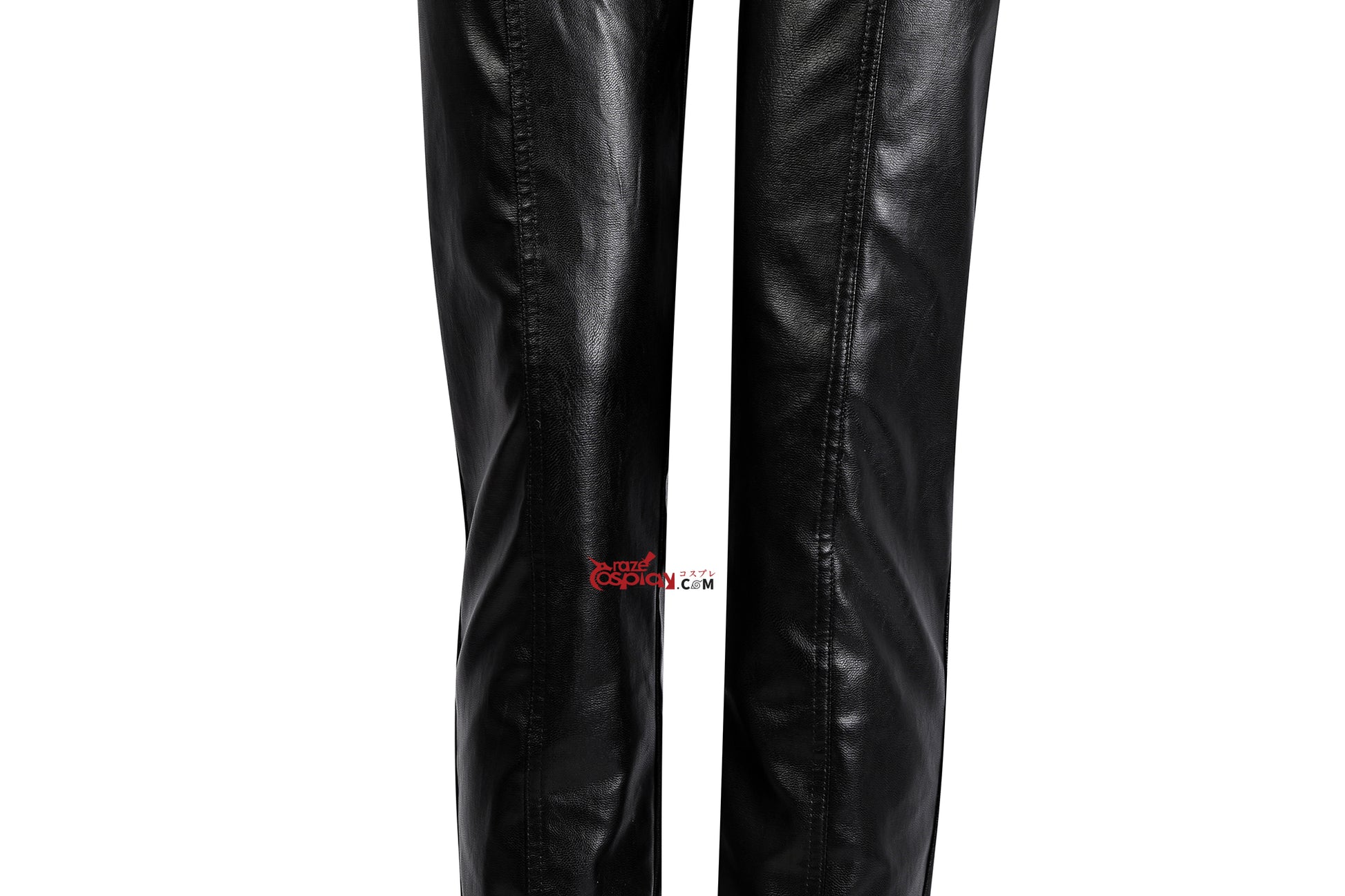 Overalls: Matte spandex (stretch), washed PU leather (non-stretch), polyester taffeta lining (non-stretch)