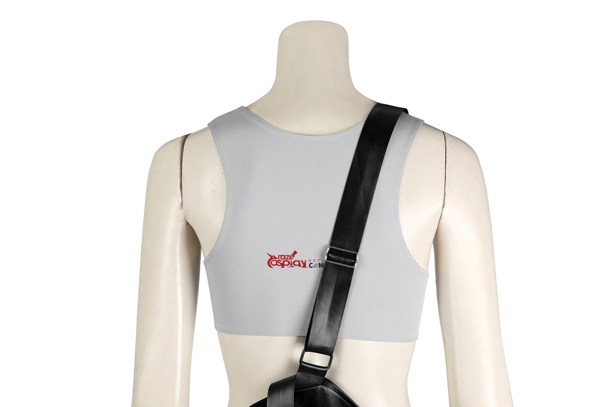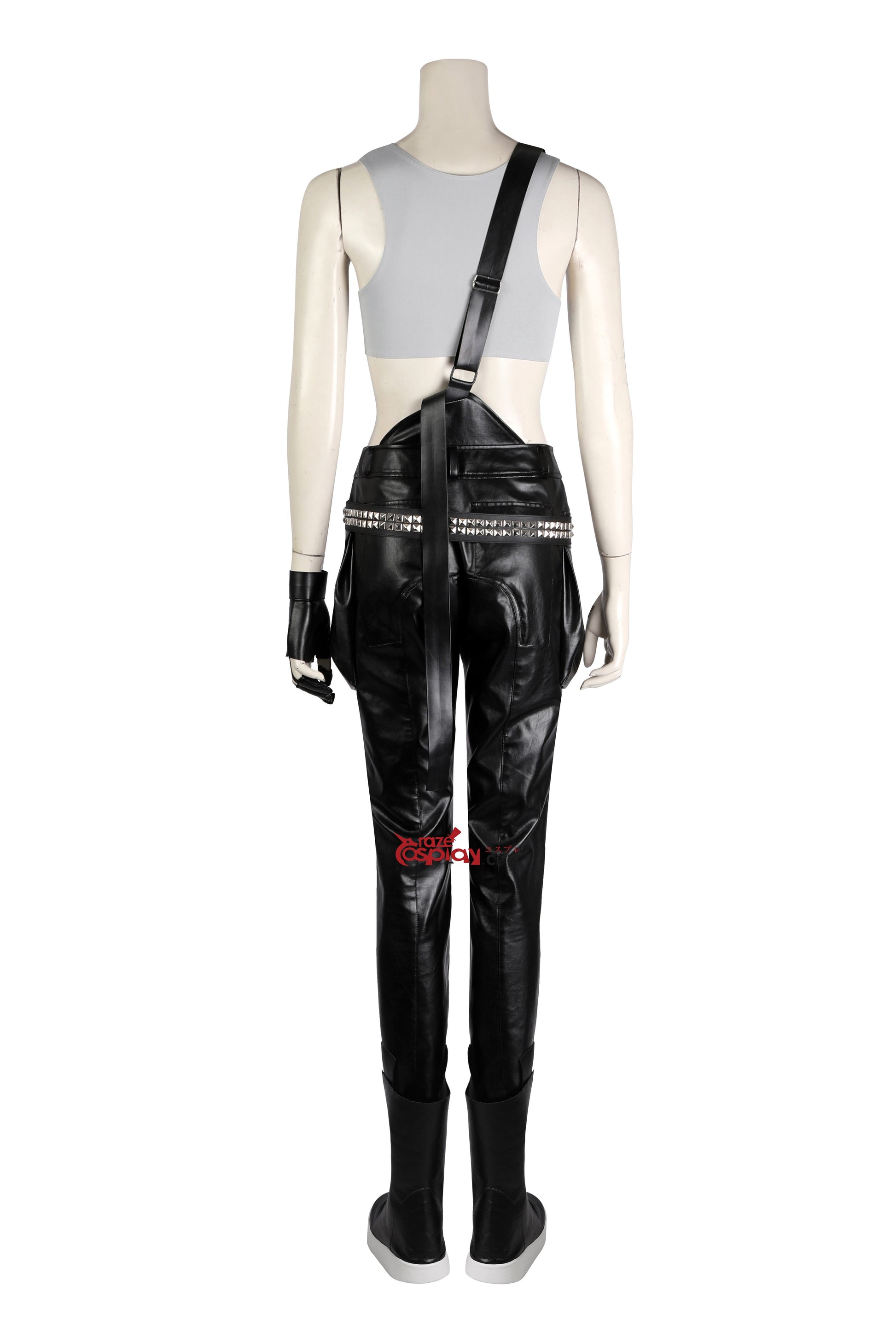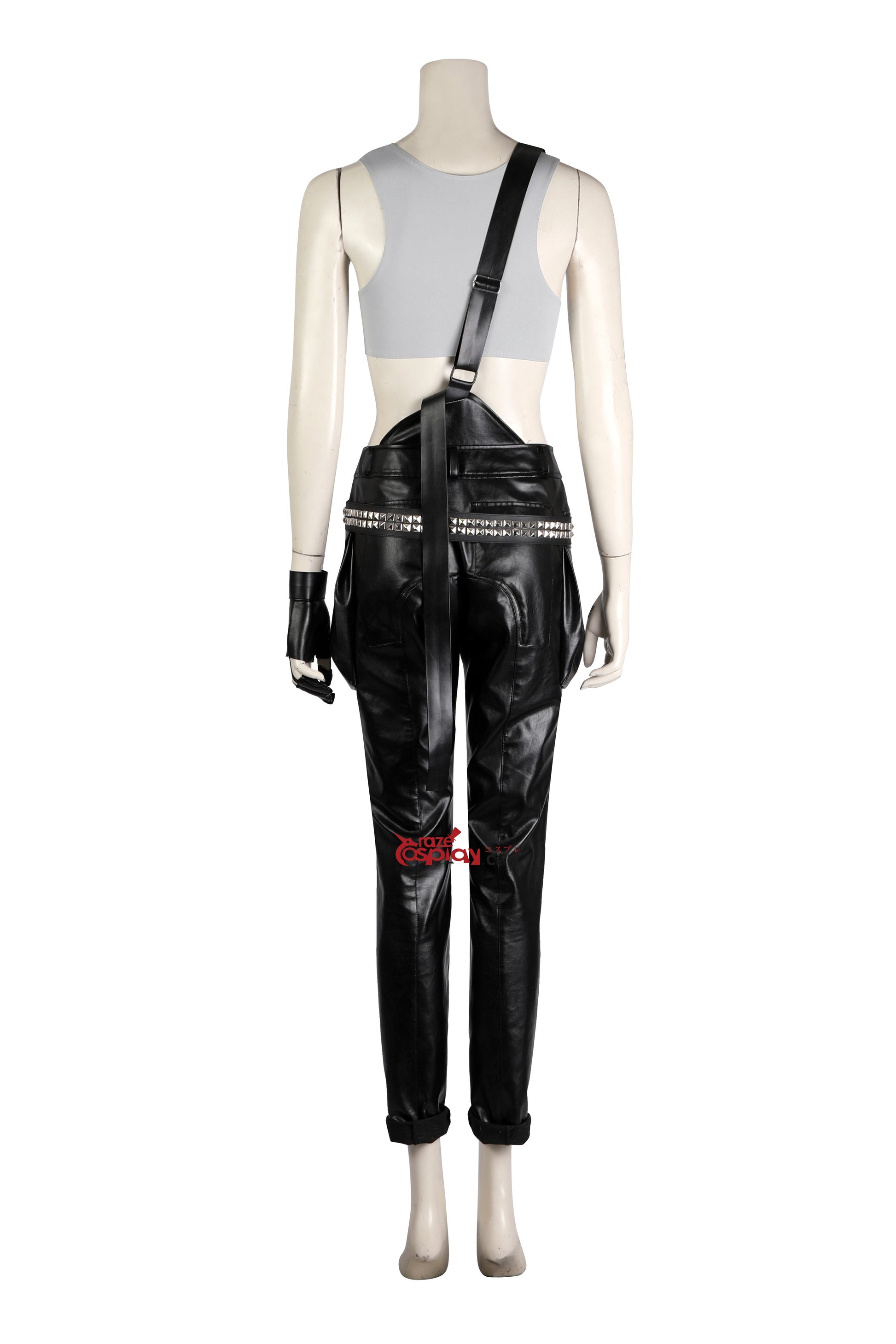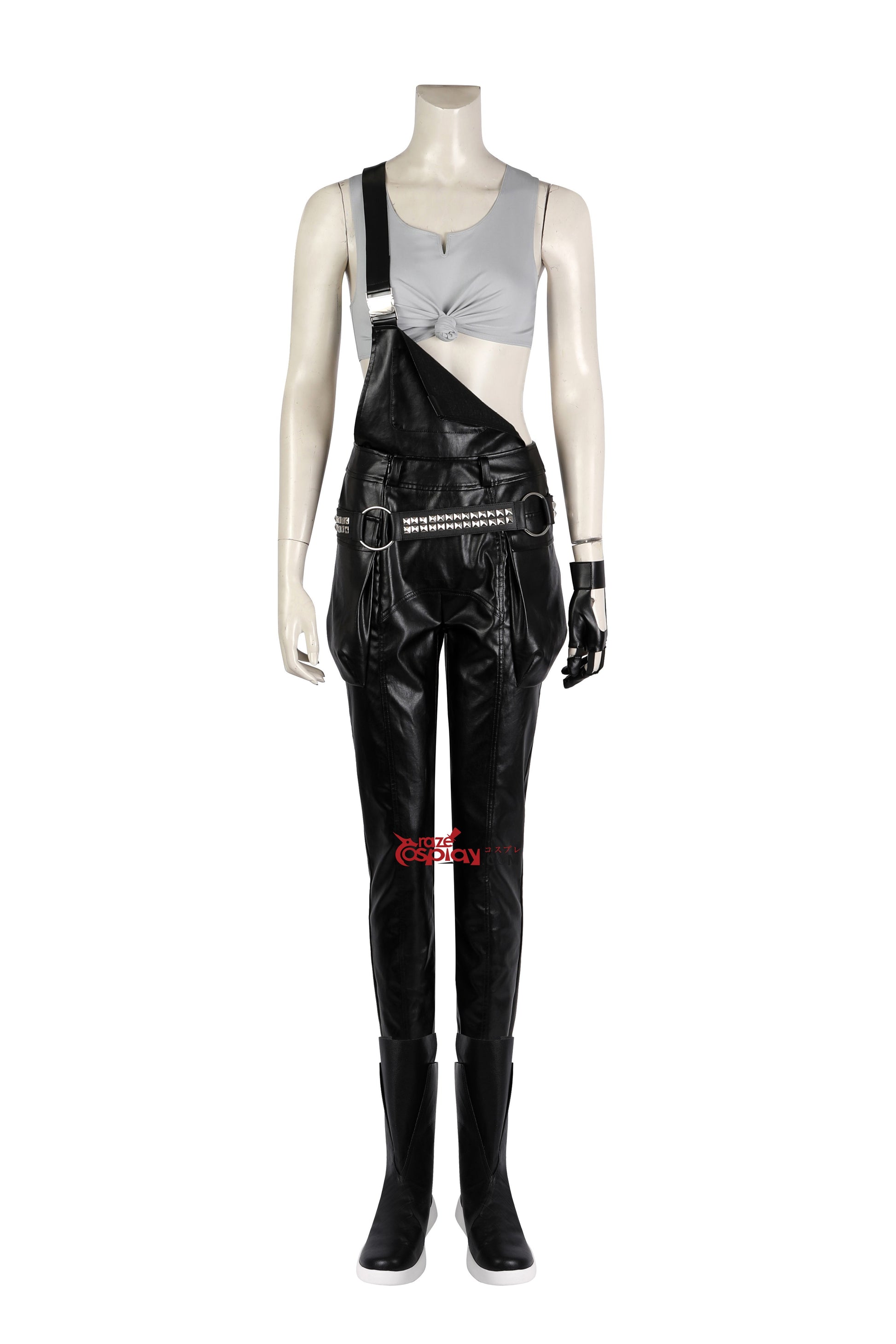 Overalls: Matte spandex (stretch), washed PU leather (non-stretch), polyester taffeta lining (non-stretch)