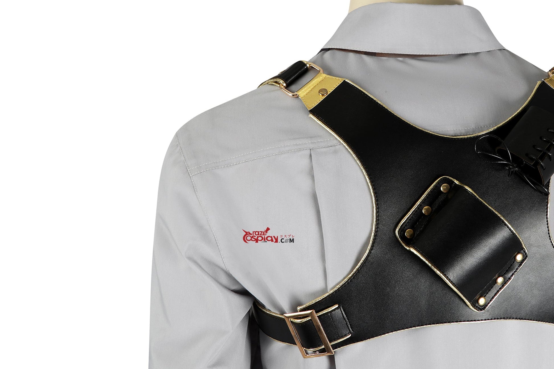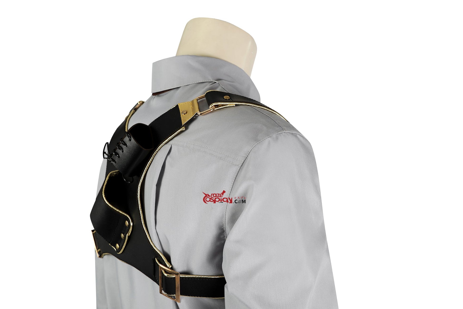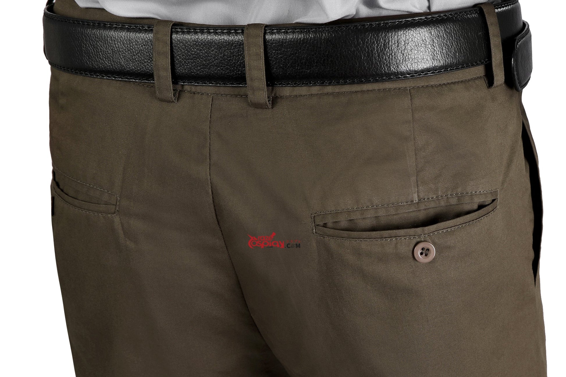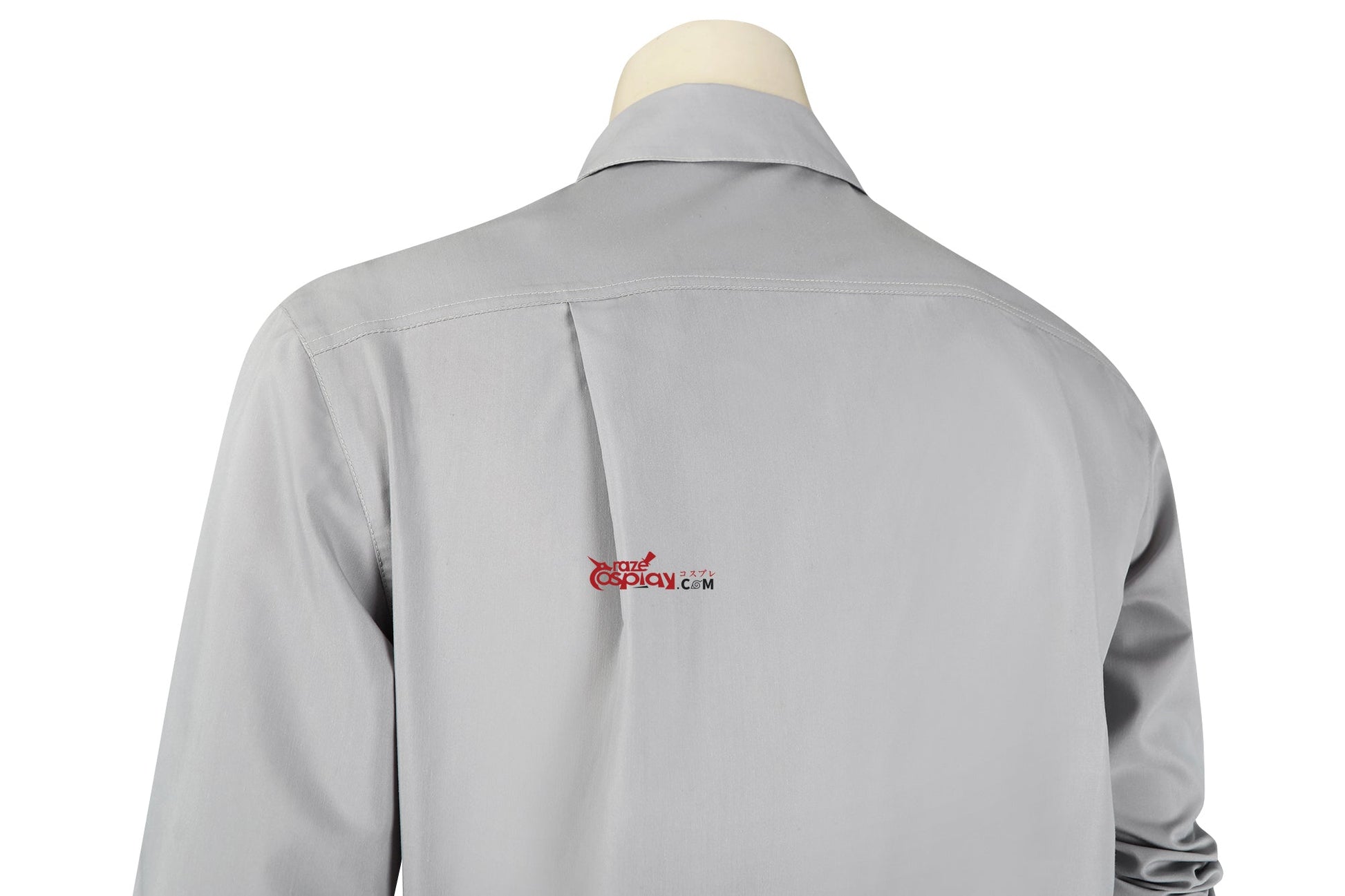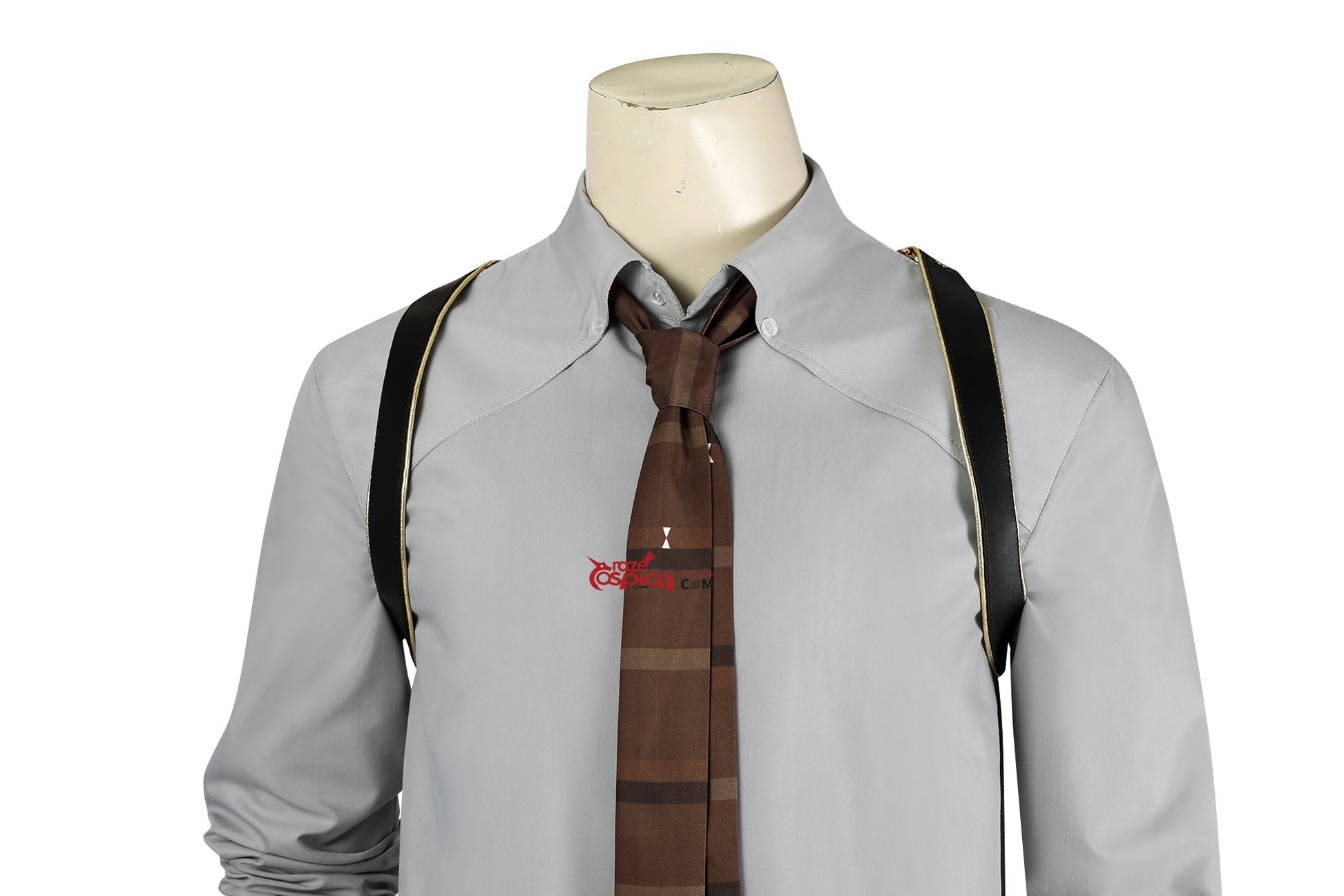 Components: Tailored trousers, Collared dress shirt, Tactical back armor, Signature green tie, Utility belt.
