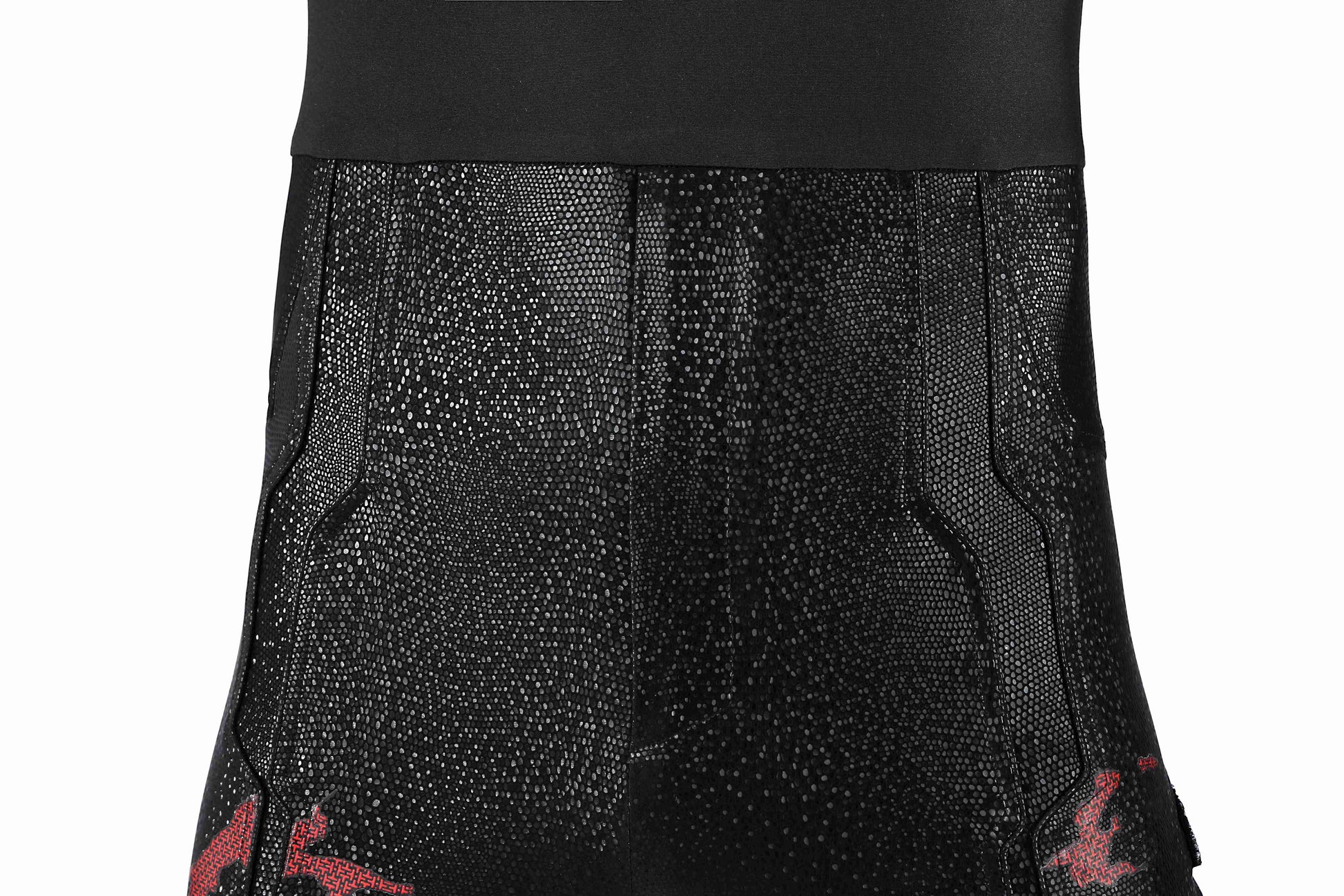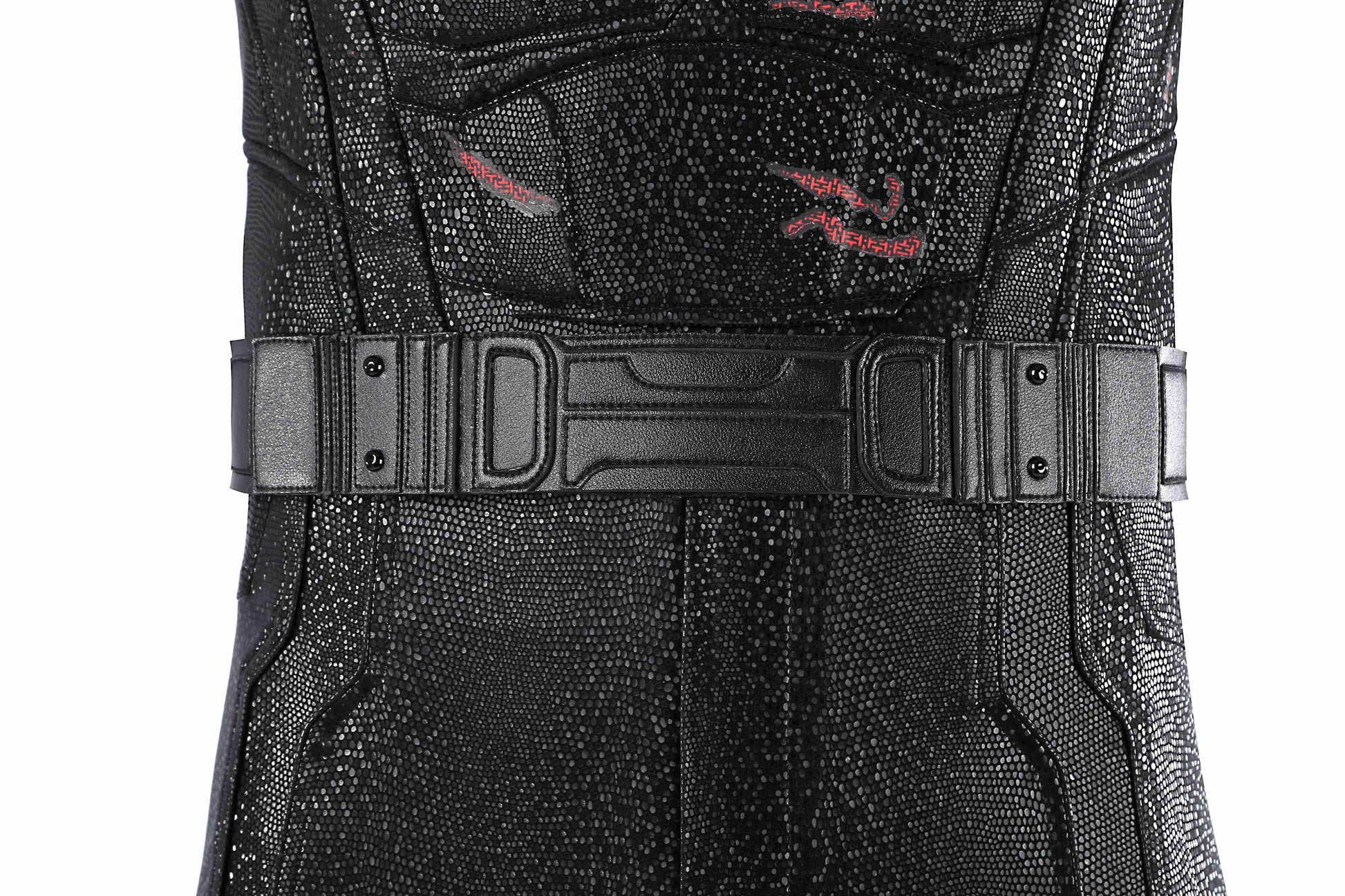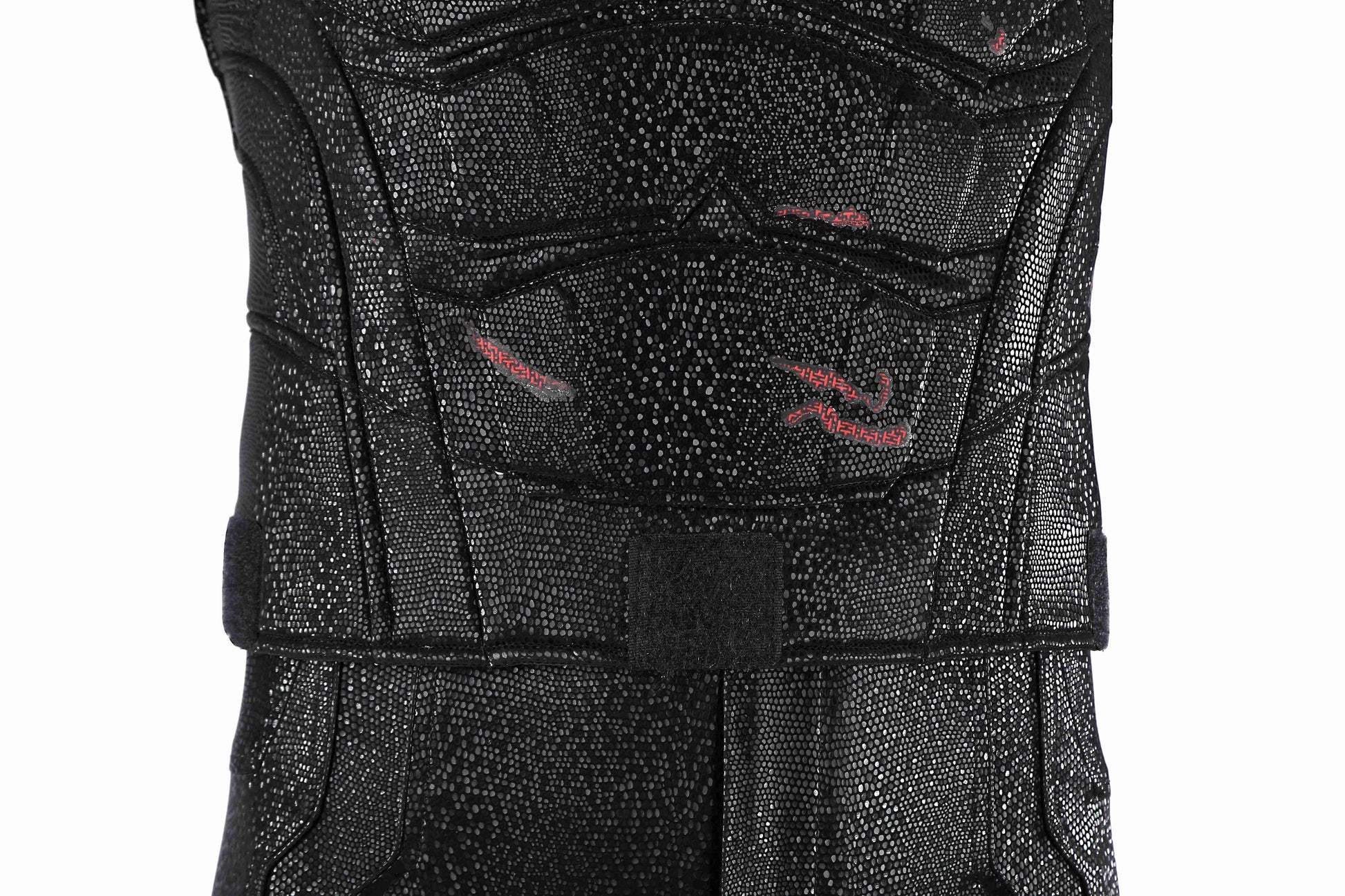 Bodysuit: Snake-grain leather (4-way stretch), sheep-grain stretch black leather (4-way stretch), matte spandex (4-way stretch)