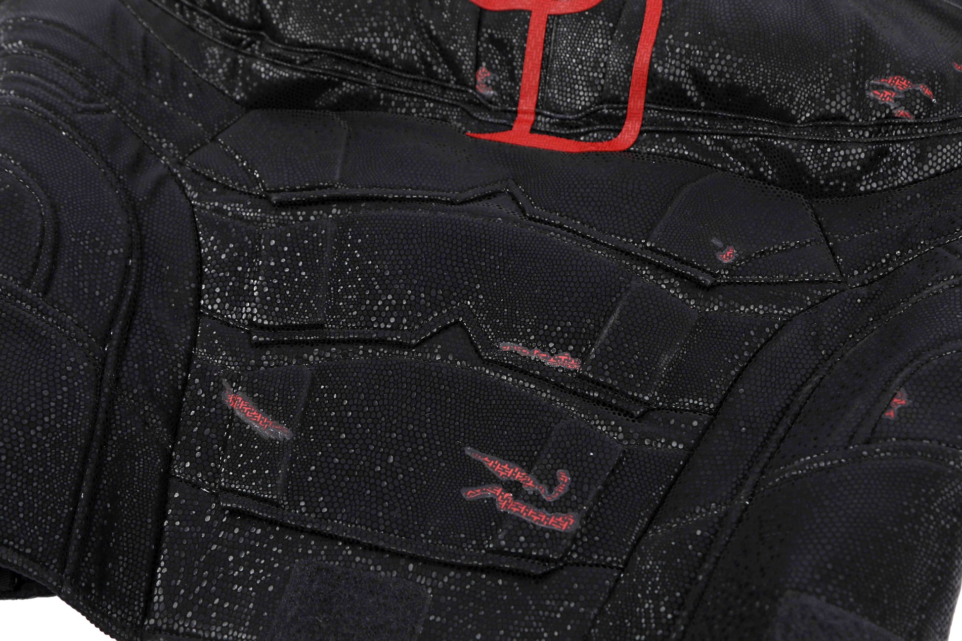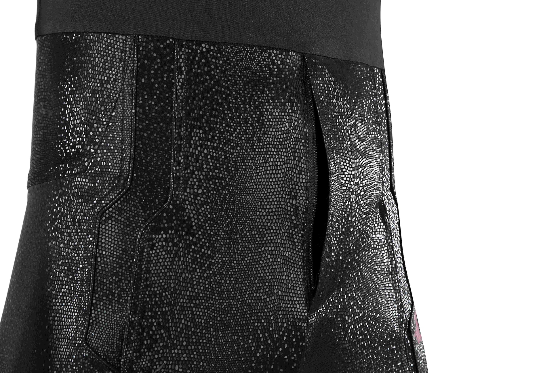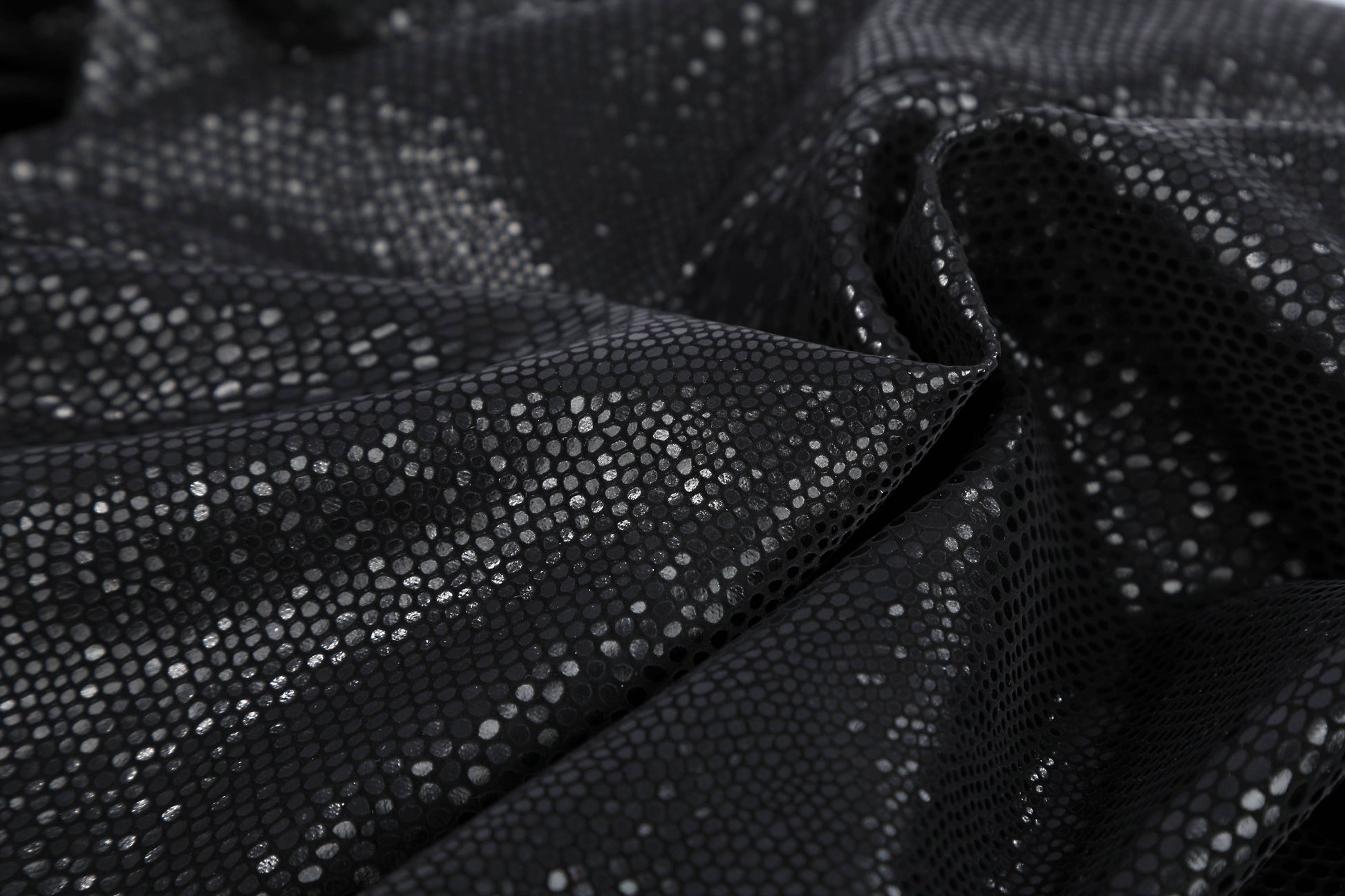 Bodysuit: Snake-grain leather (4-way stretch), sheep-grain stretch black leather (4-way stretch), matte spandex (4-way stretch)