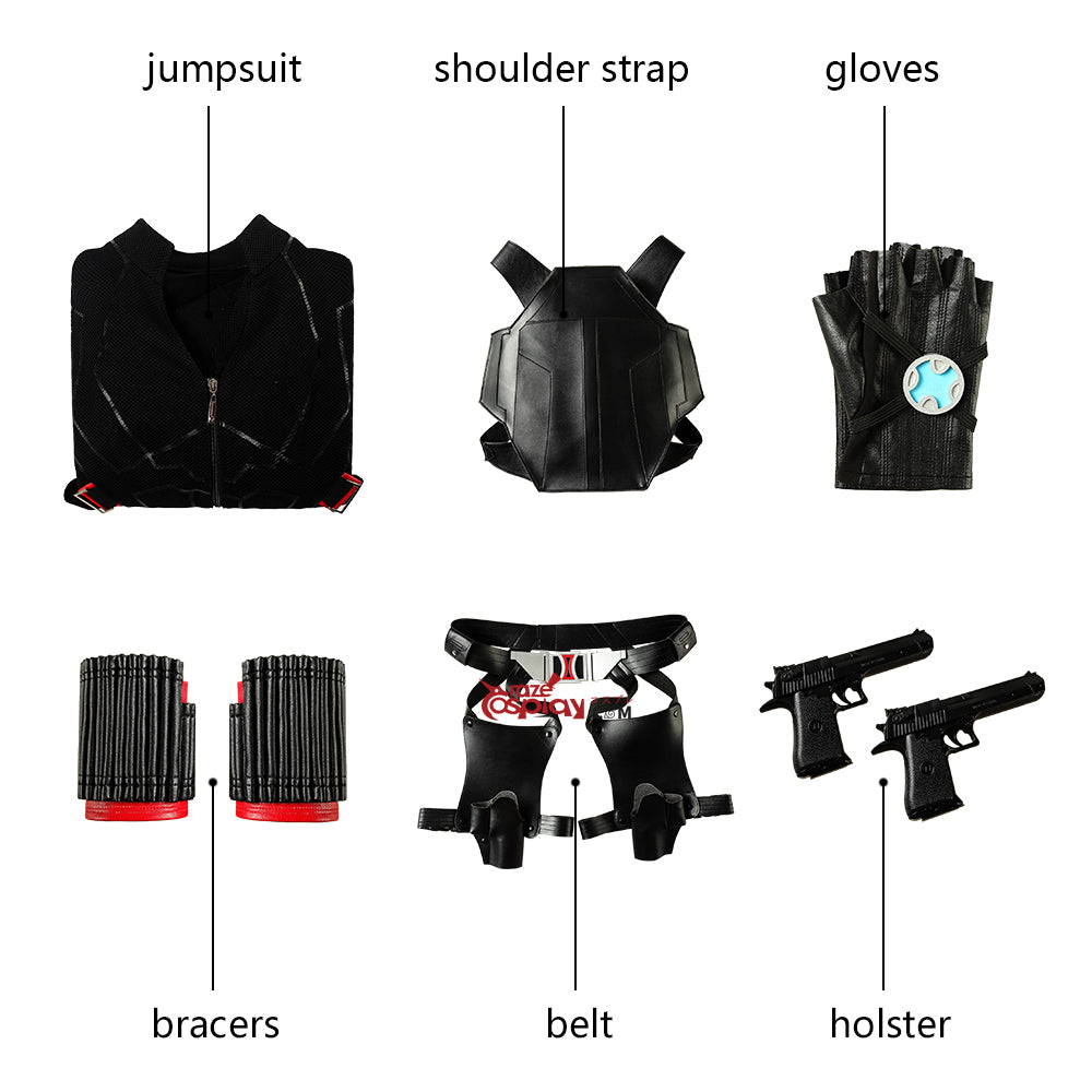 Components: Full-body suit, forearm guards x2, tactical gloves, integrated waist holster, combat backpack, nano-tech gauntlet replica, toy blasters x2 (exclusive of shoes).