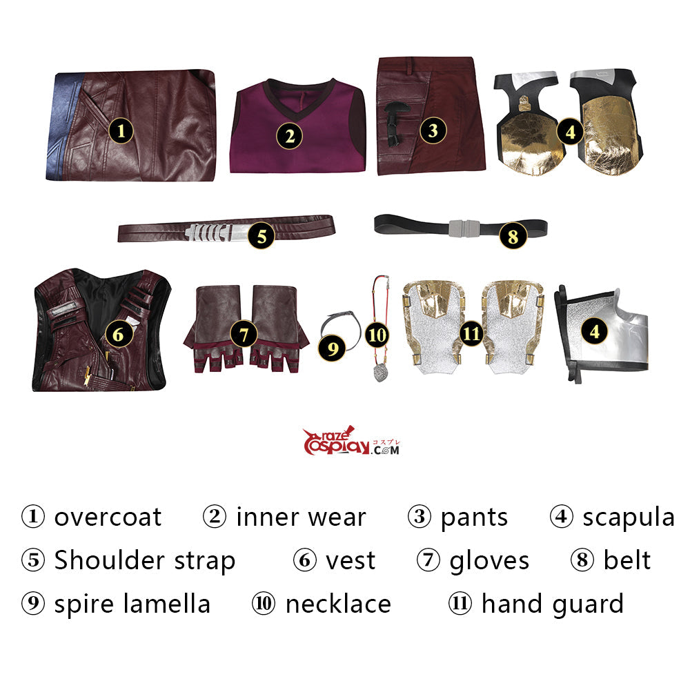 Components: Jacket, Base layer, Pants, Dual shoulder armor, Crossbody harness, Tactical vest, Gloves, Utility belt, Wristbands, Necklace (Celestial-inspired), Wrist guards.