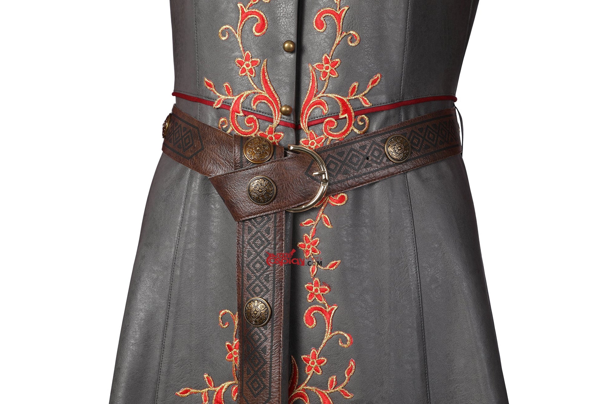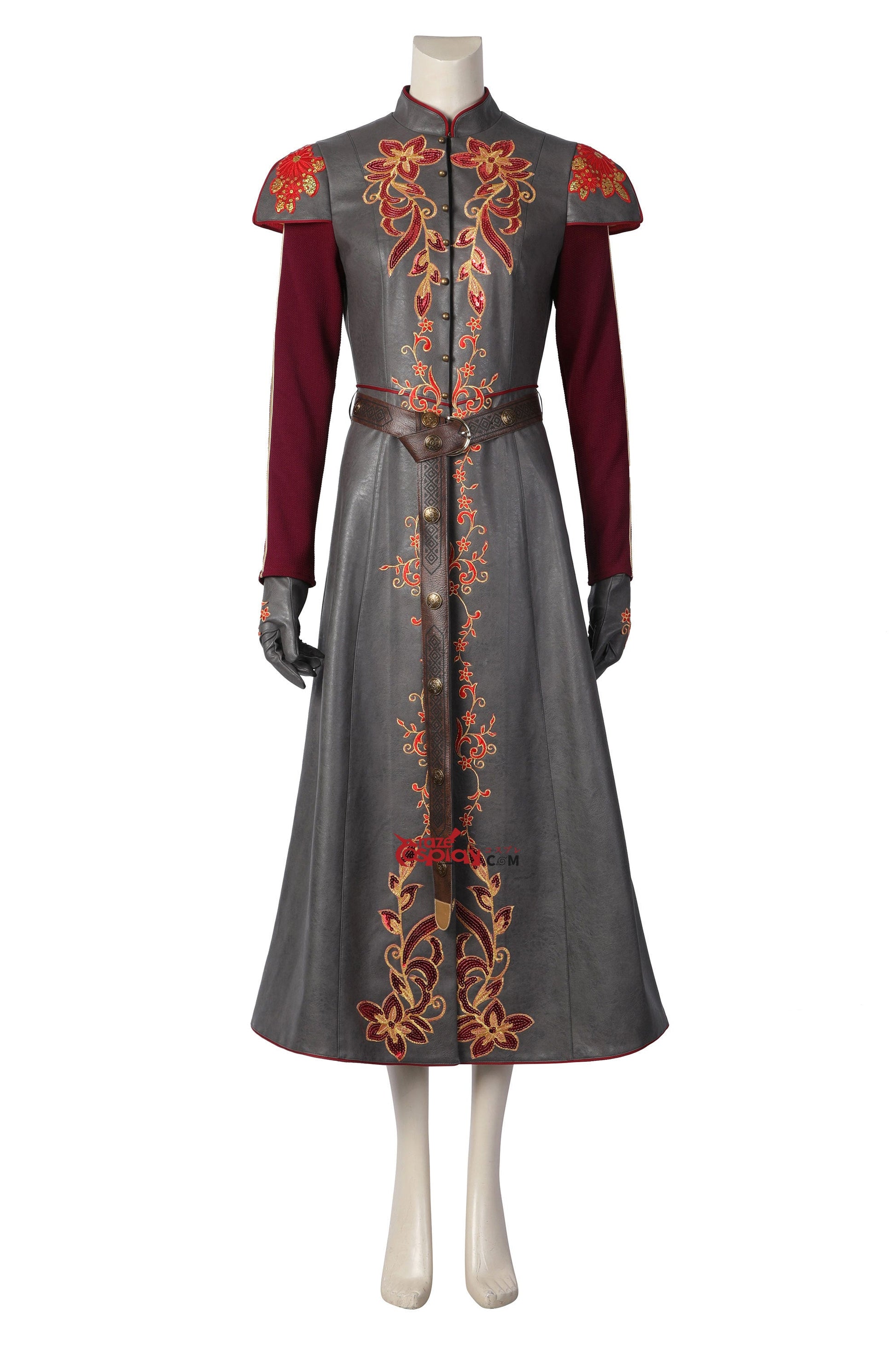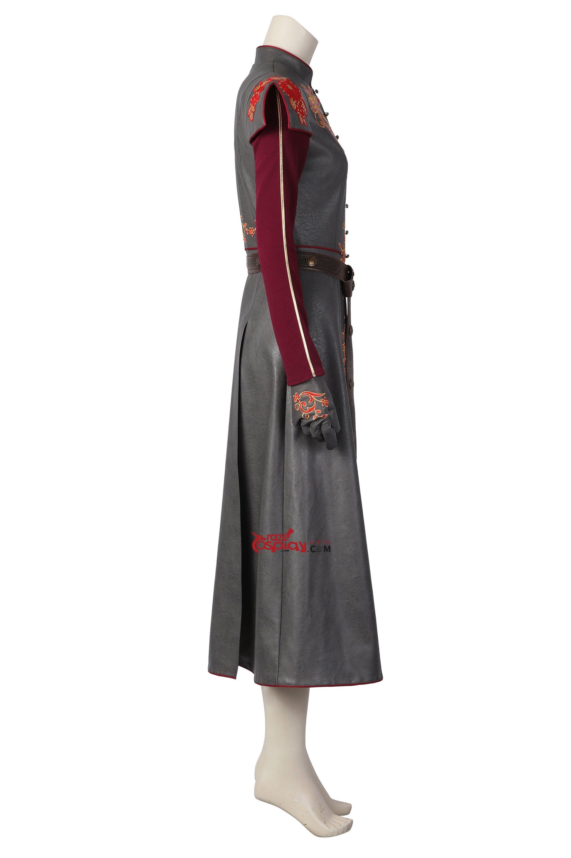 Components: Embroidered royal coat, Braided leather belt, Reinforced gloves, Dragon-scale earrings.