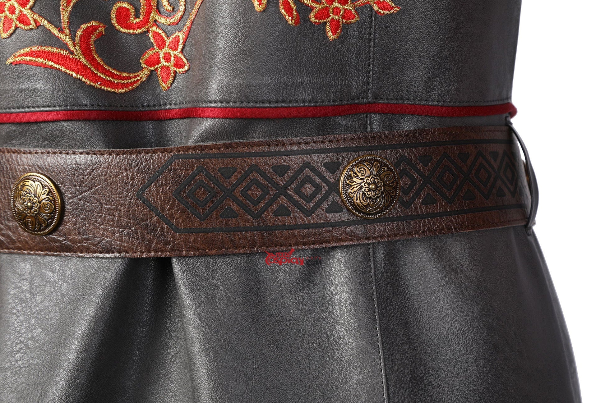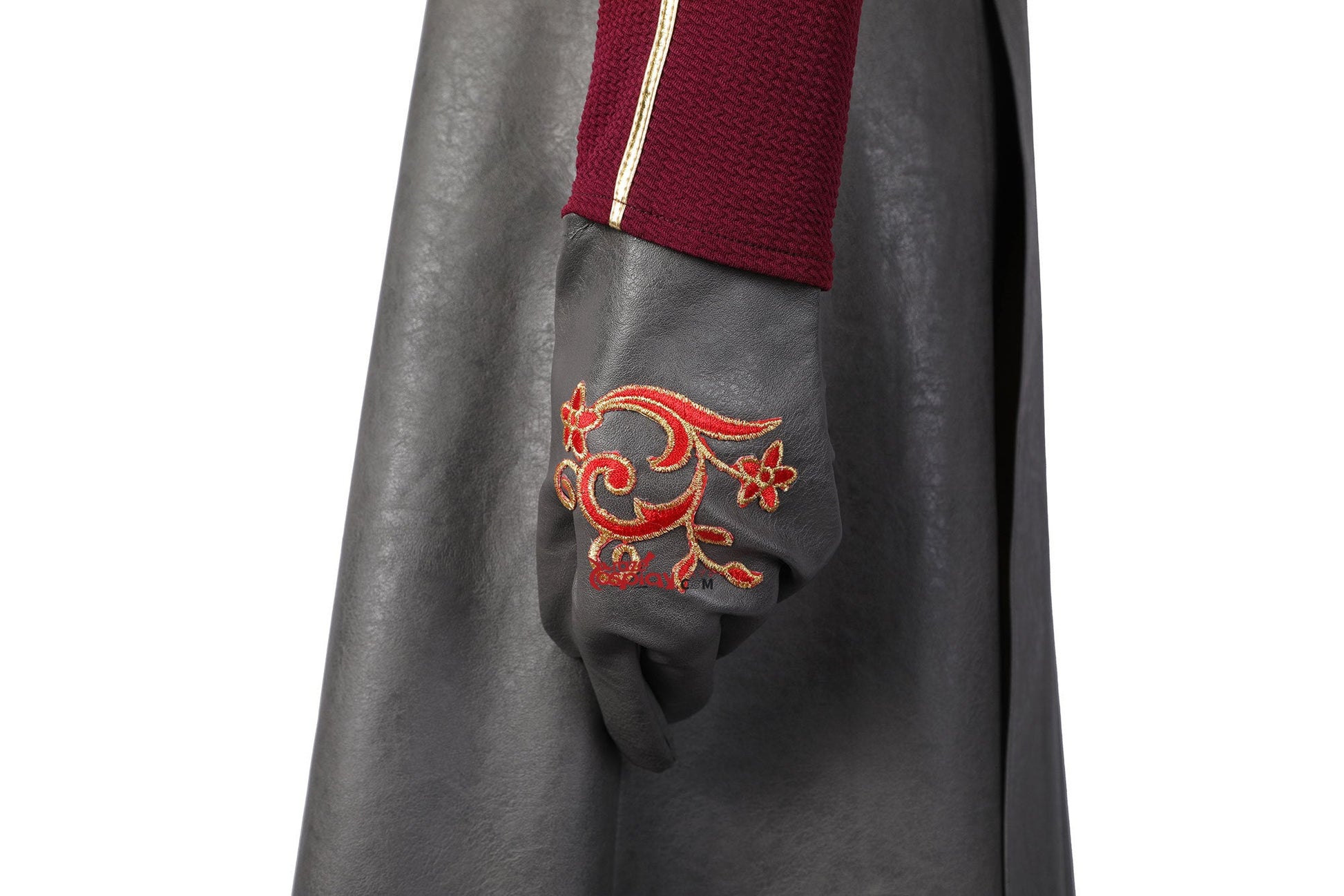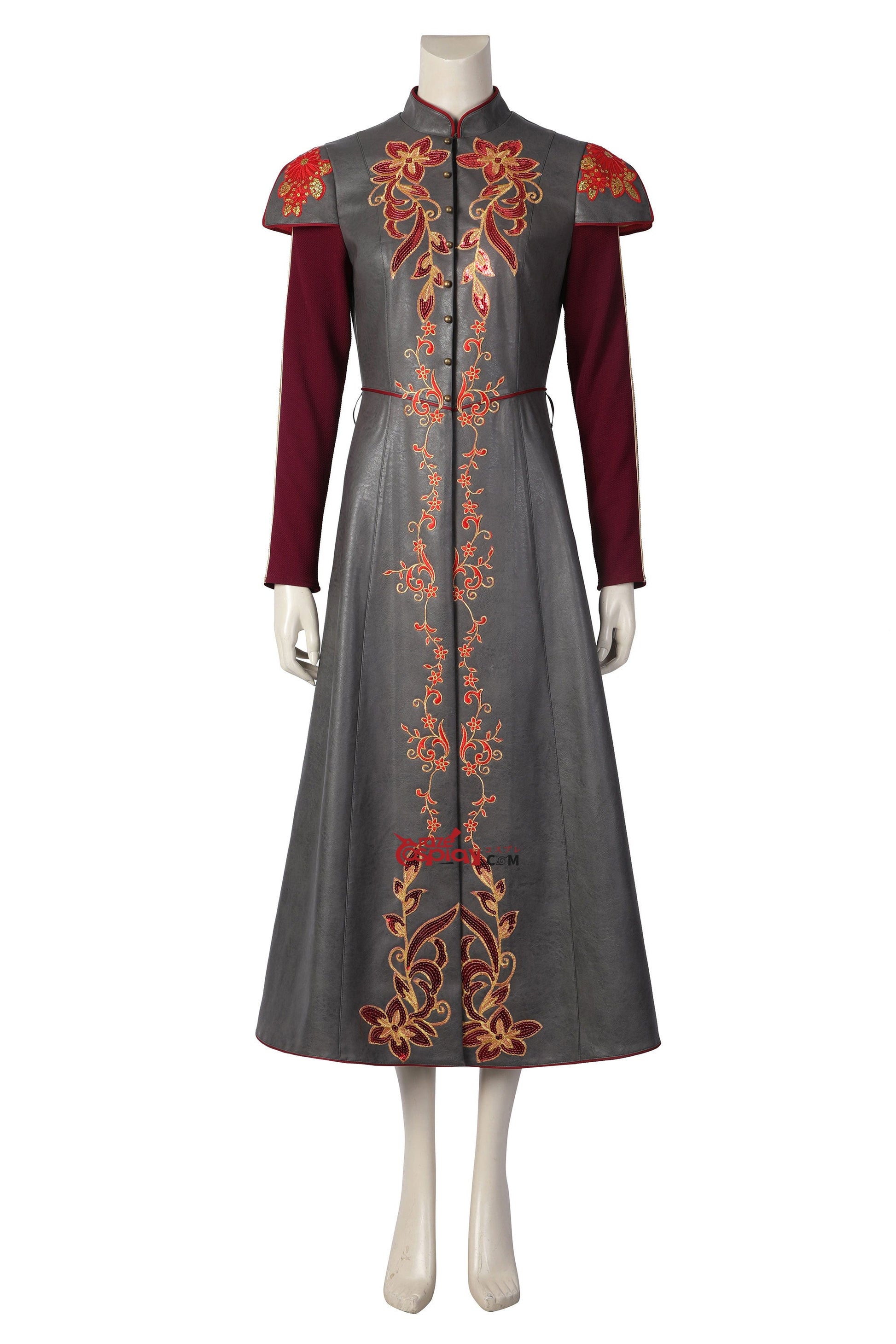 Components: Embroidered royal coat, Braided leather belt, Reinforced gloves, Dragon-scale earrings.