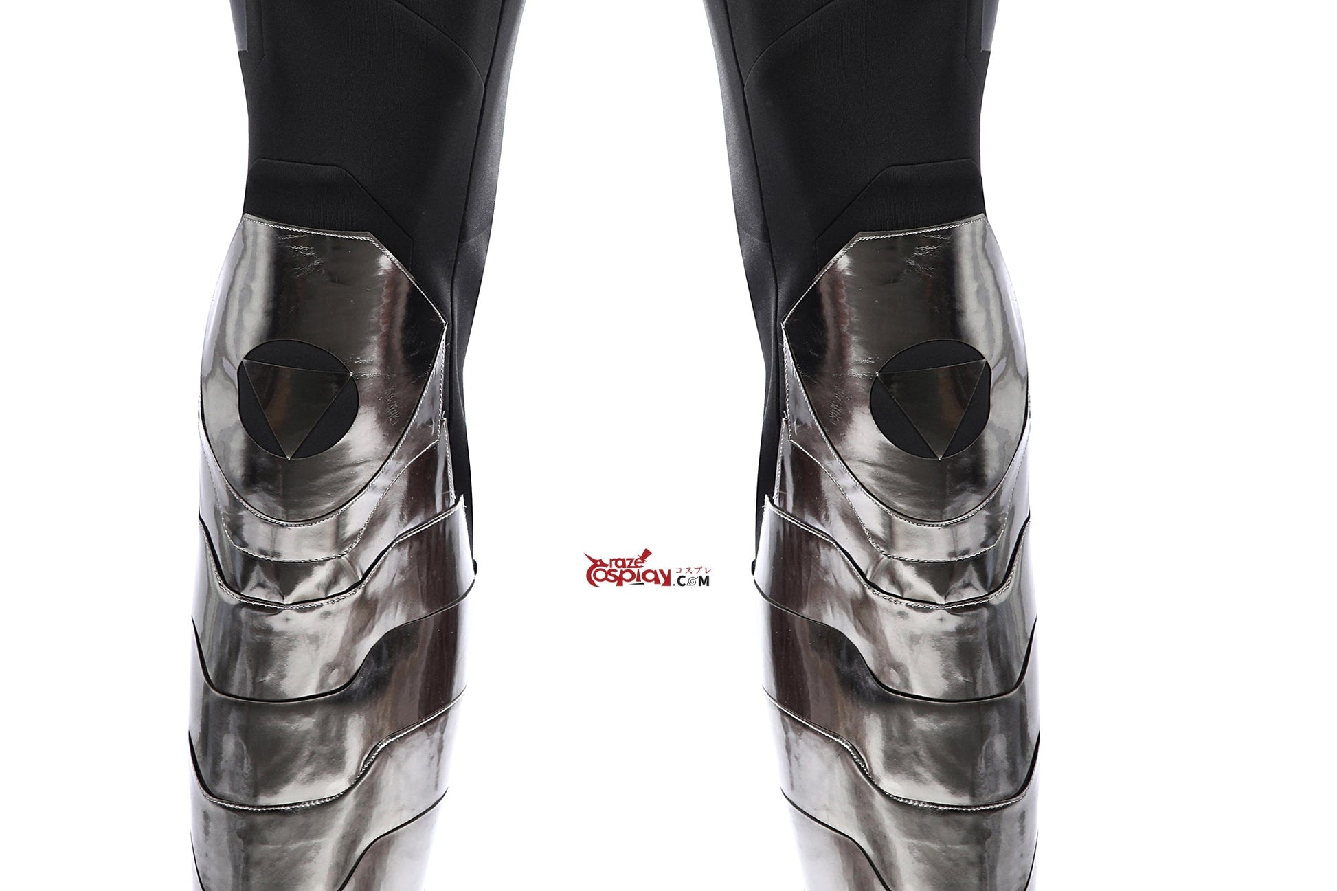 Leg Guards: Gunmetal mirrored leather (non-stretch).