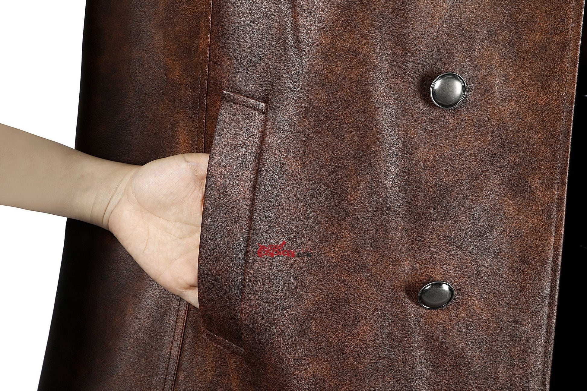 Coat: Distressed PU leather (non-stretch), taffeta (non-stretch).