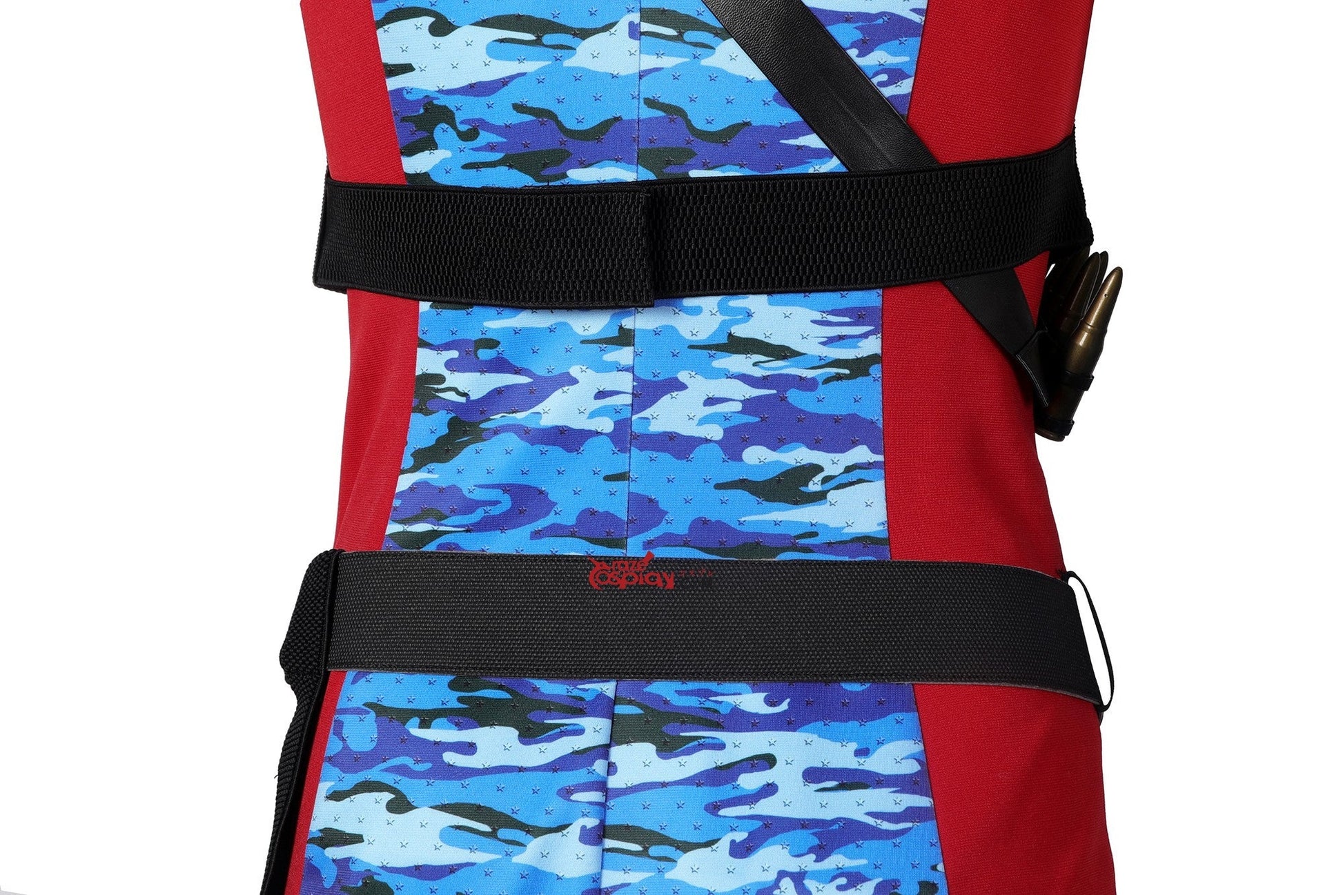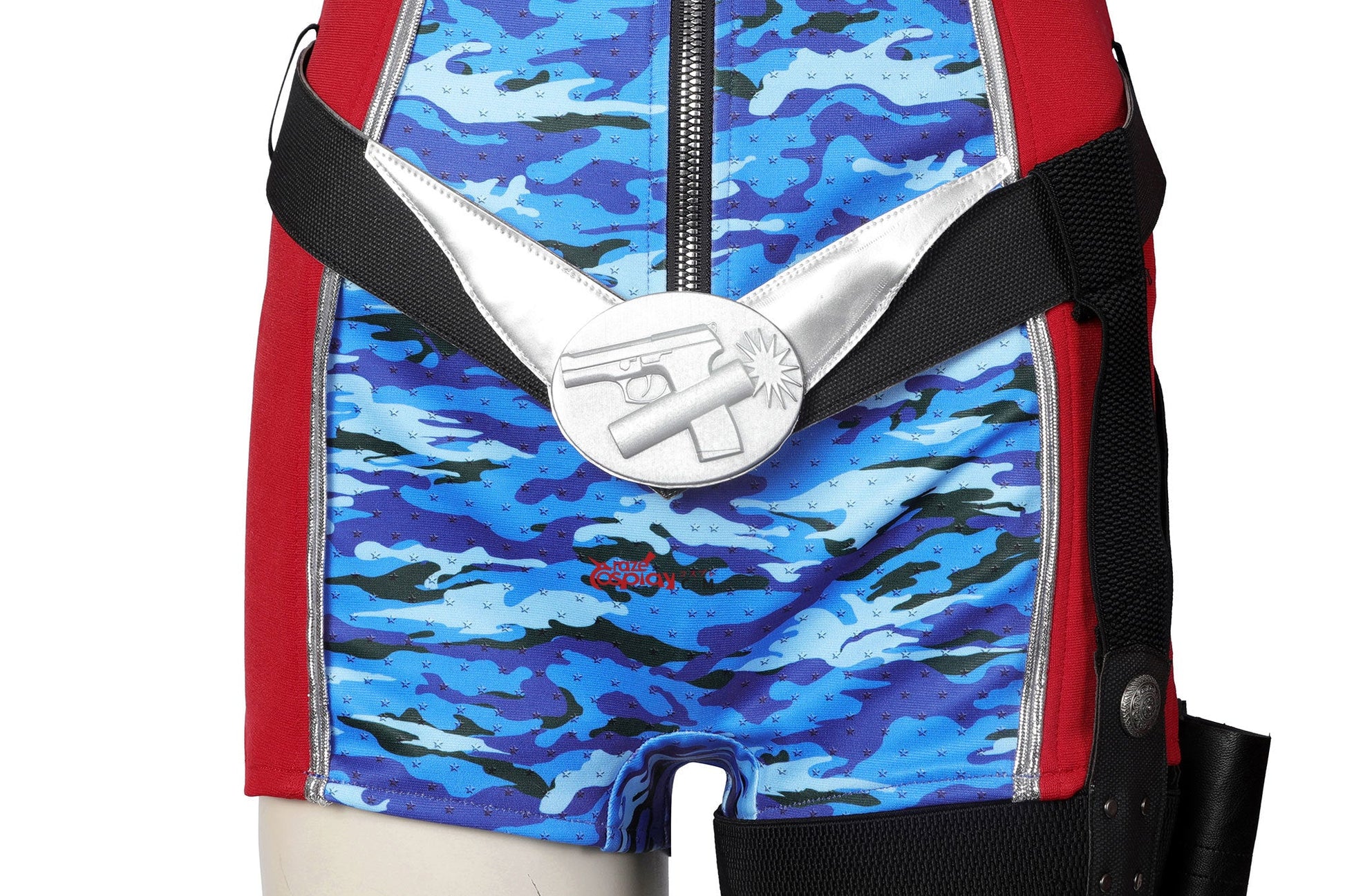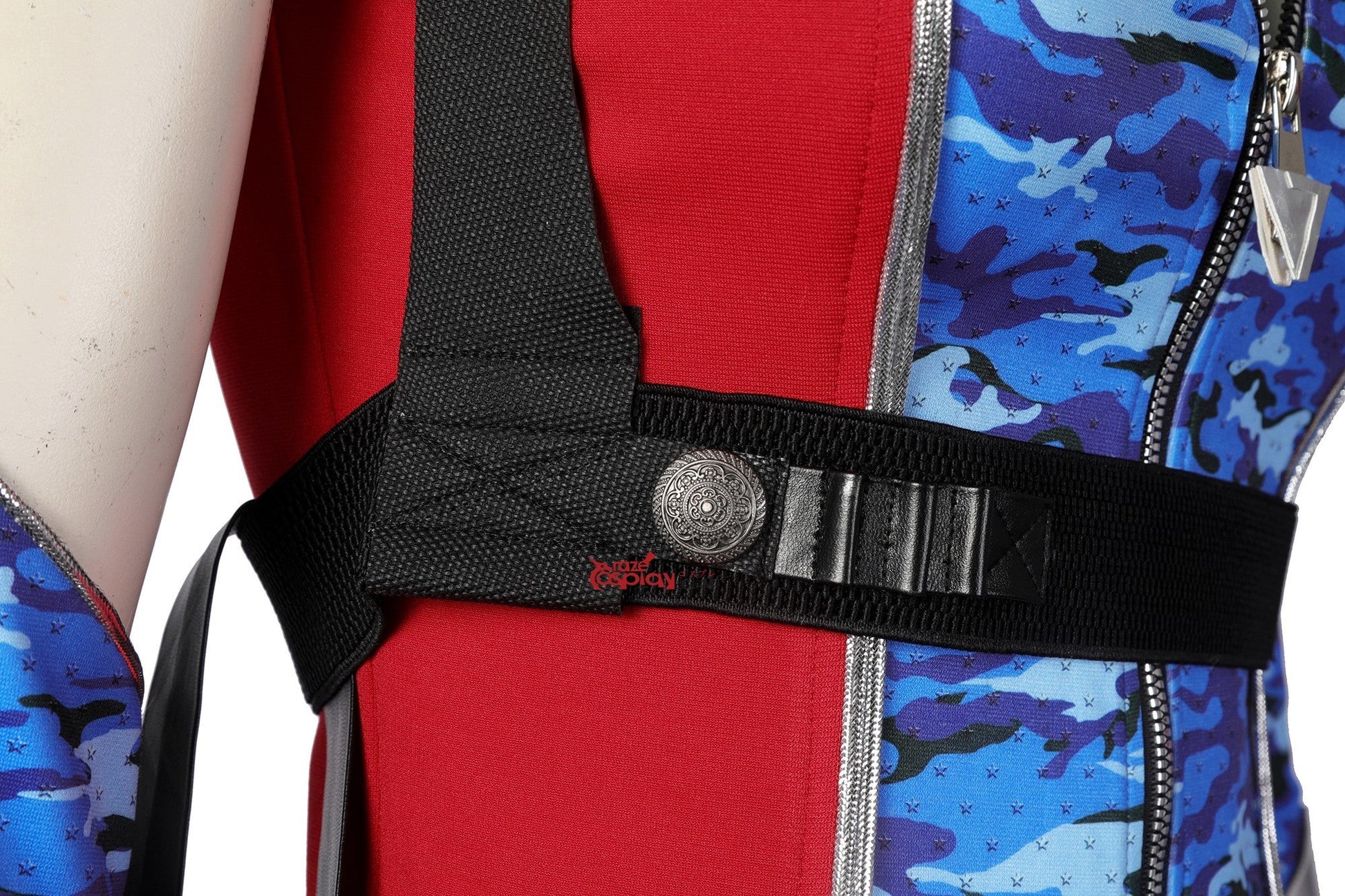 Components: Shoulder straps, tactical chest harness, jumpsuit, utility belt, combat gloves, thigh straps.