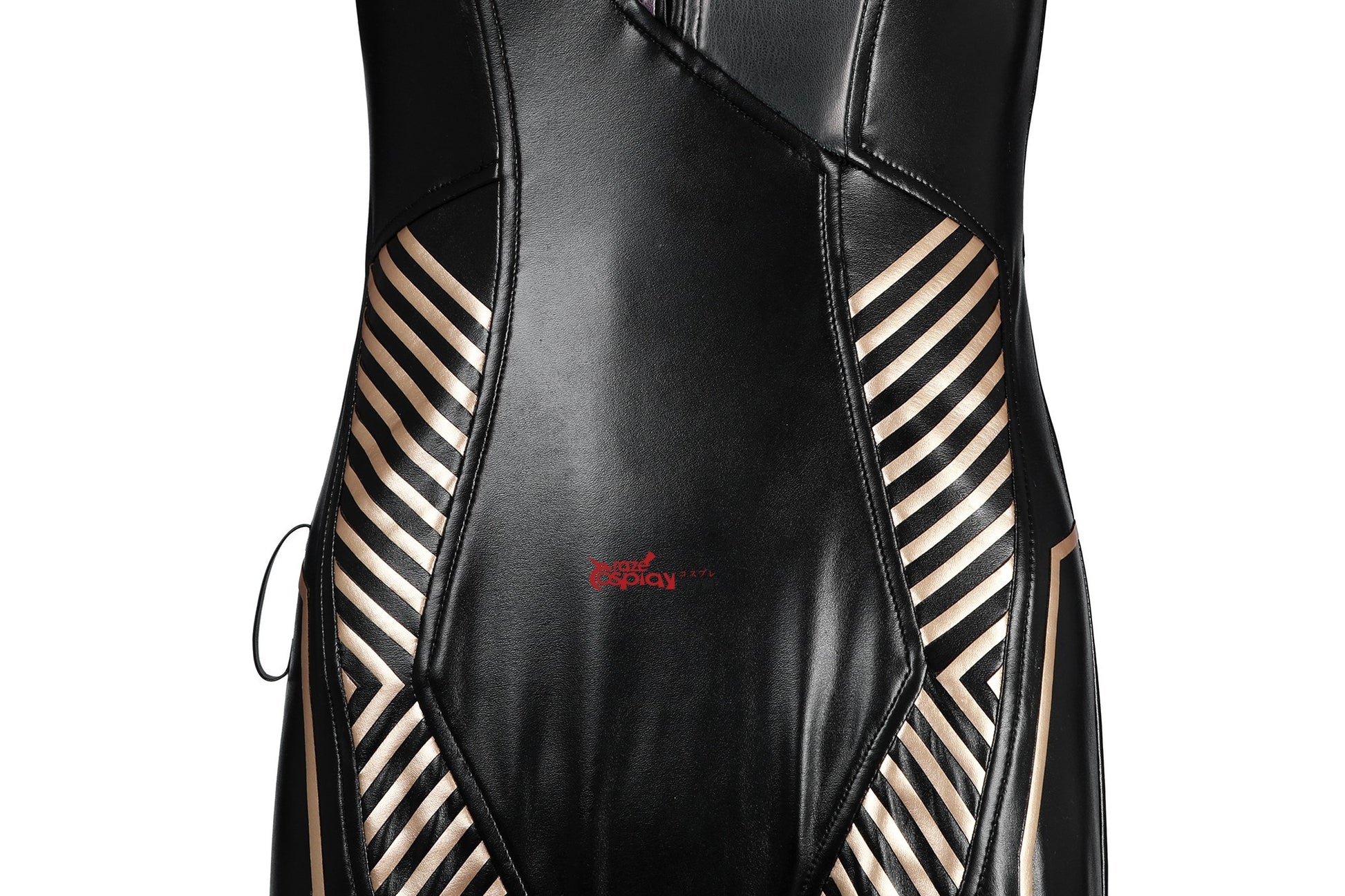 Bodysuit: Sheep-grain embossed stretch leather (stretch), stretch knit lining (stretch), polyester taffeta lining (non-stretch)
