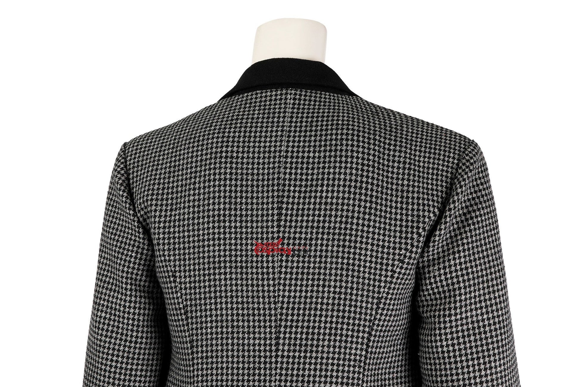 Material: Houndstooth wool (non-stretch), single-faced wool (non-stretch), smooth four-way stretch leather (stretch), gold-foiled leather (slight stretch), standard leather (non-stretch), sanded leather (non-stretch), Roma fabric (stretch), taffeta (non-stretch).