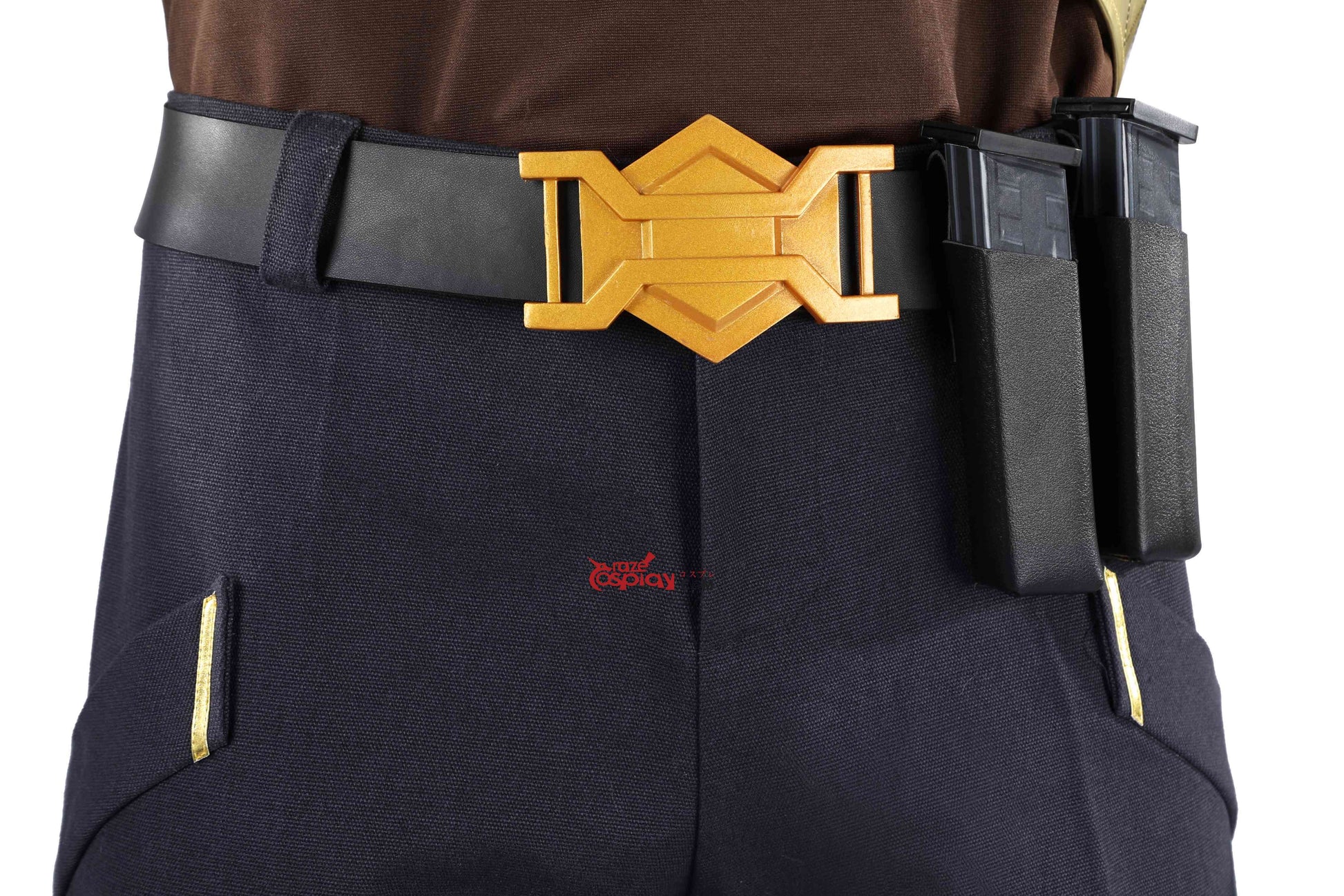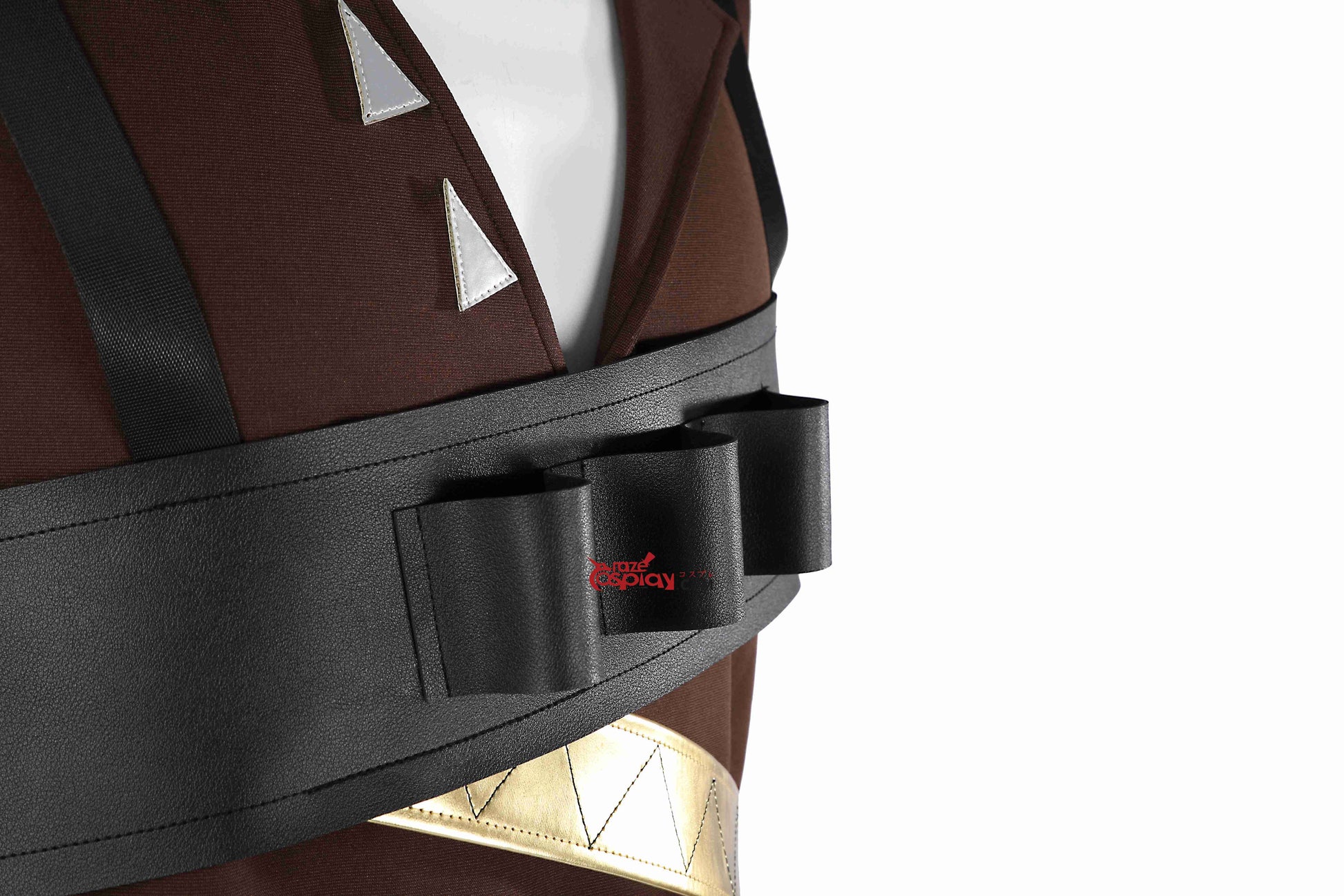 Suspenders, Wrist Guards & Belt: Thick goat-grain leather (non-stretch).