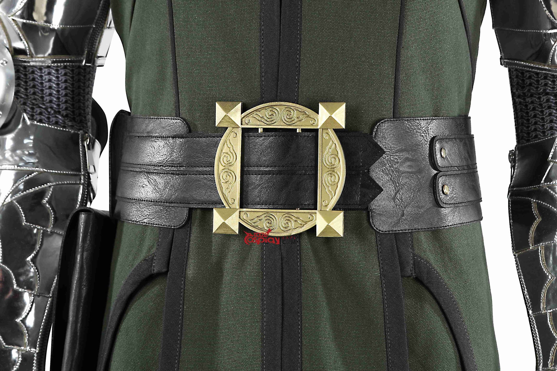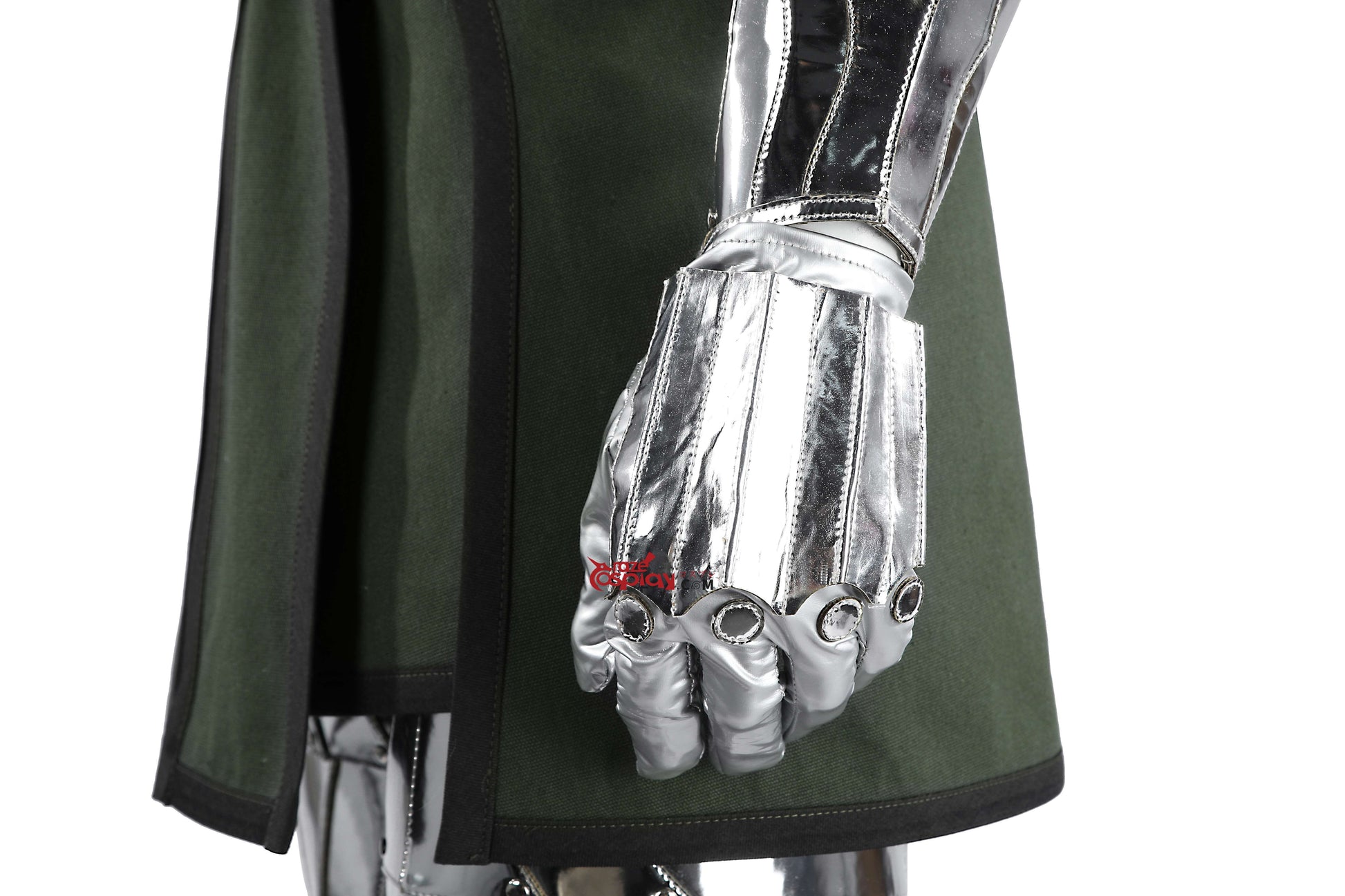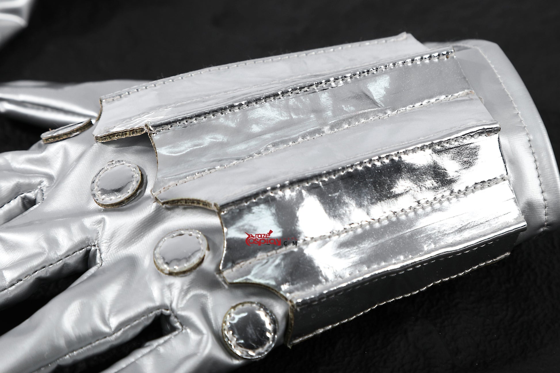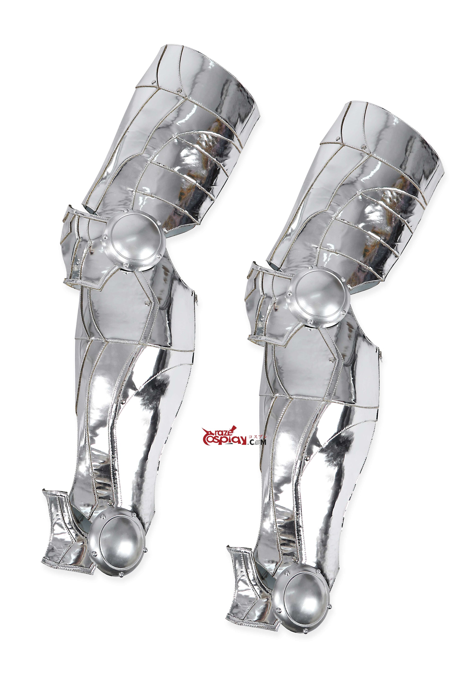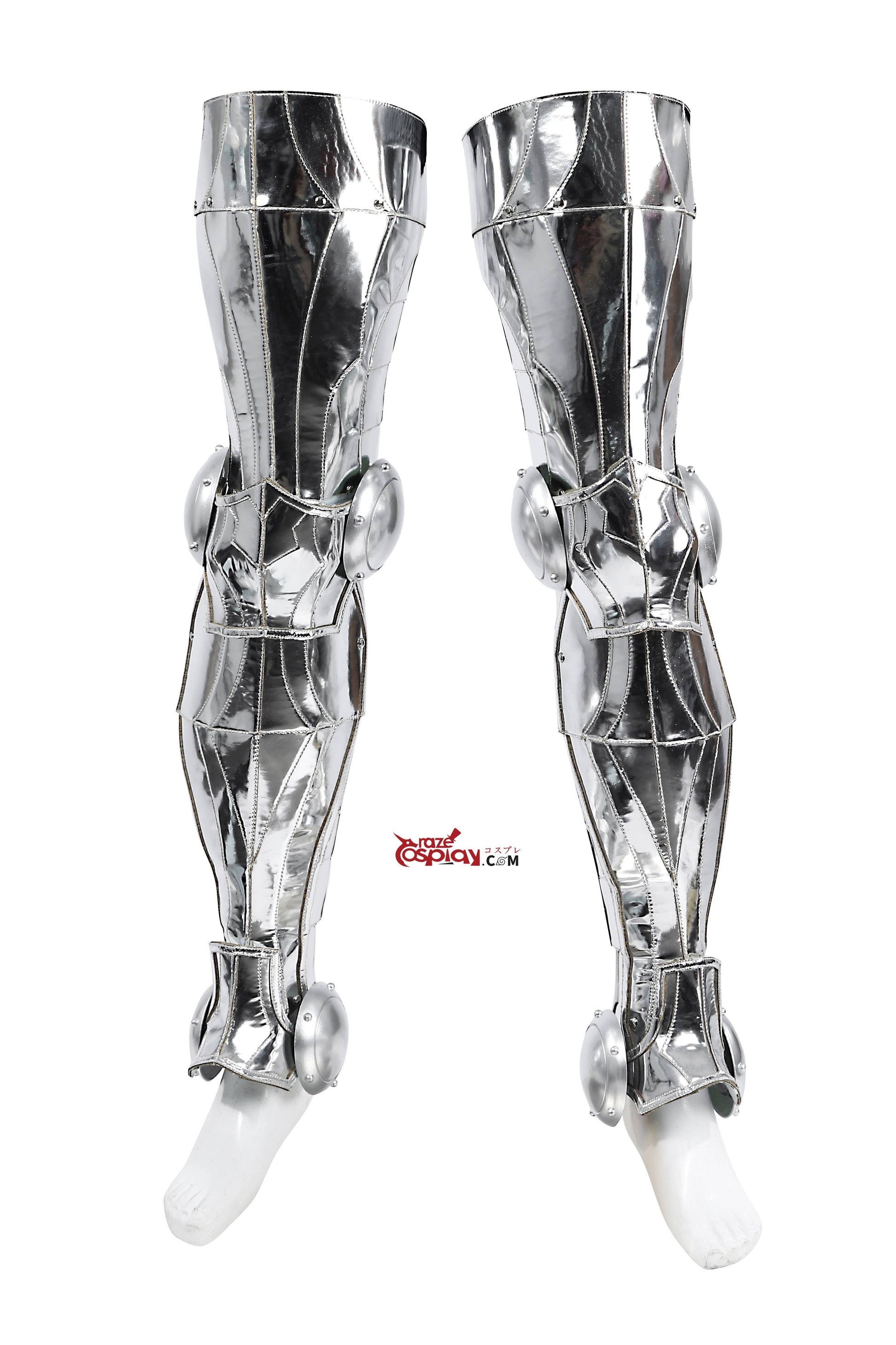 Leg/Shoulder/Arm Guards: Metallic mirrored leather (non-stretch), thick PU leather (non-stretch).