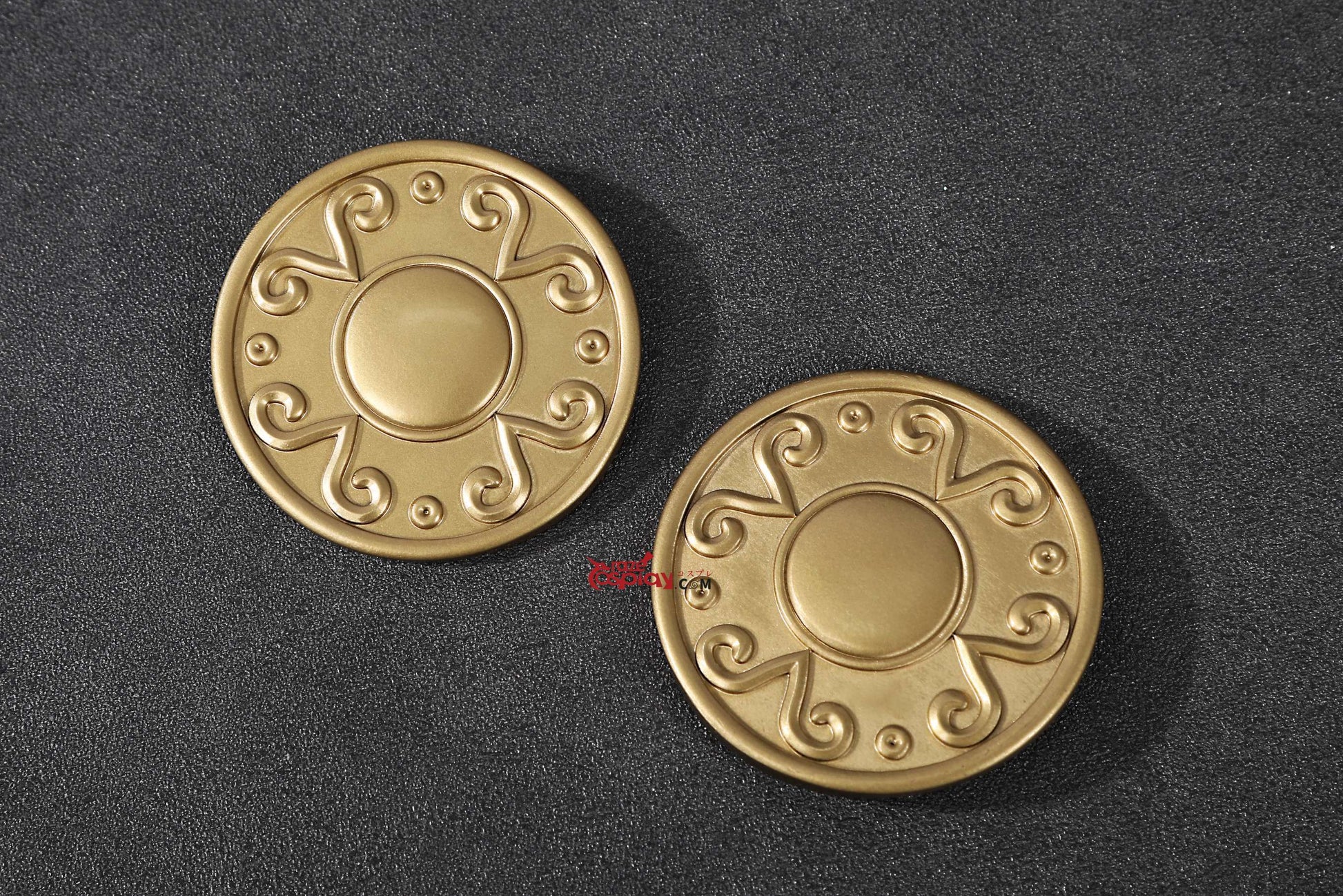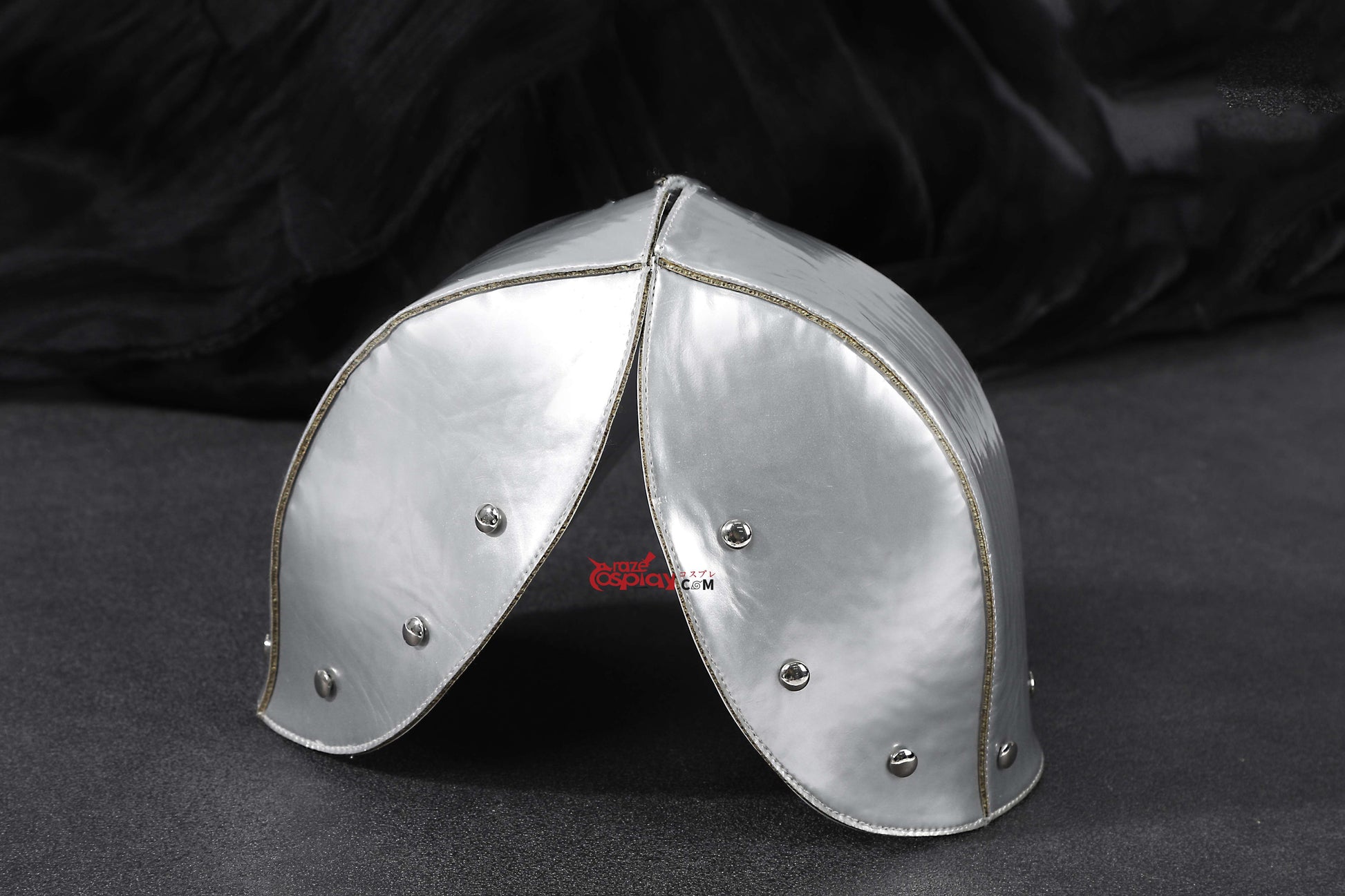 Pauldrons: Pearlescent silver leather (non-stretch), PU leather (non-stretch).