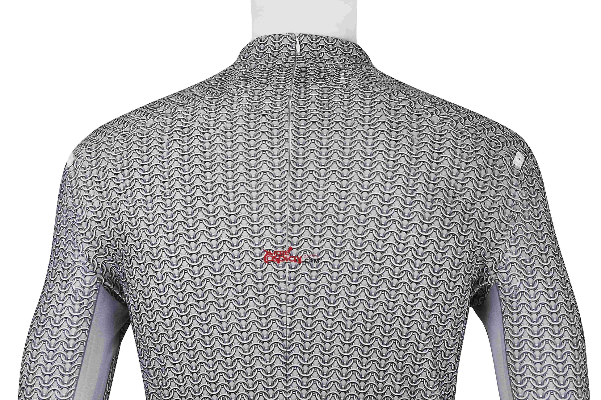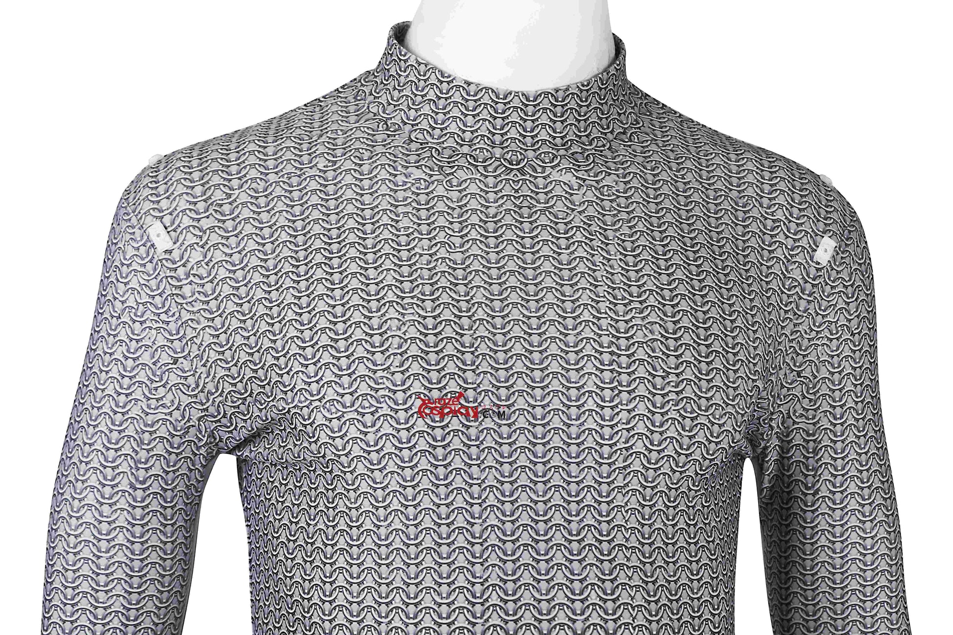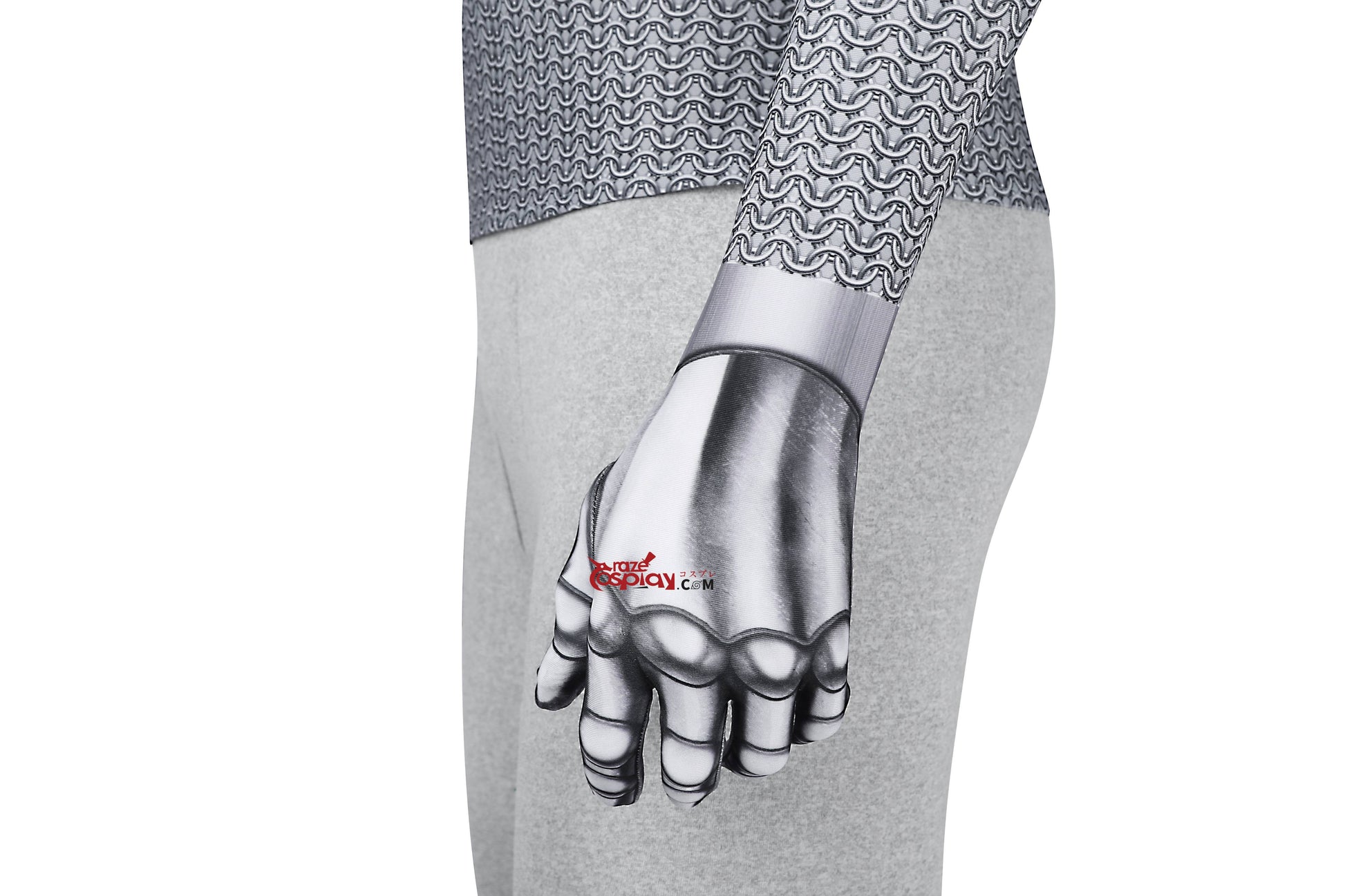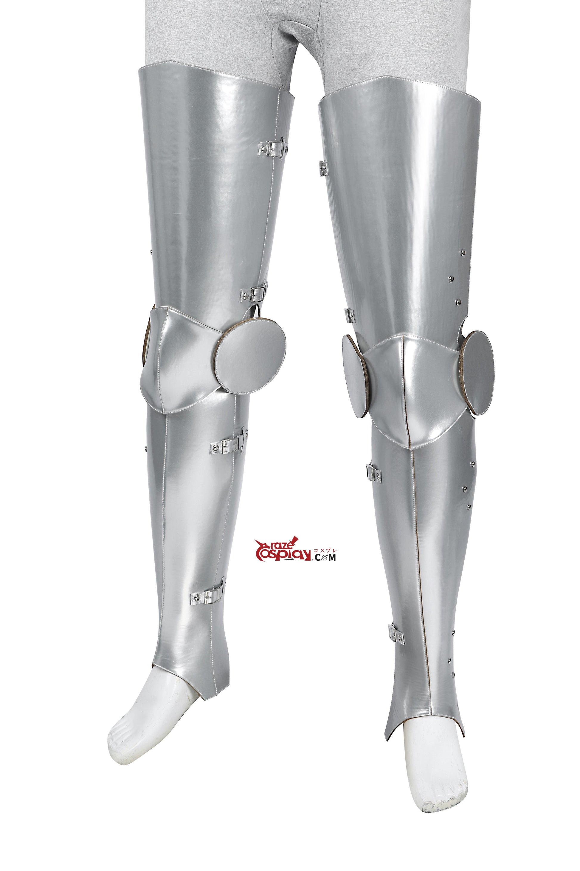 Arm/Thigh Guards: Pearlescent silver leather (non-stretch), PU leather (non-stretch).