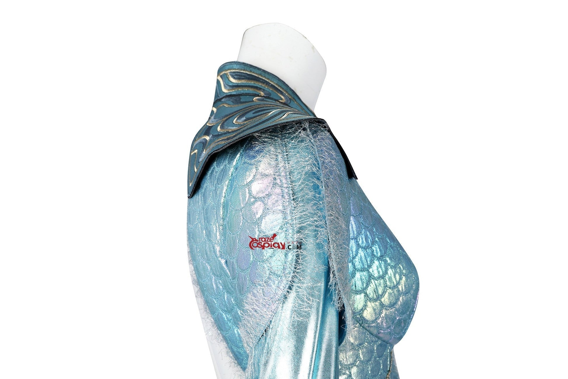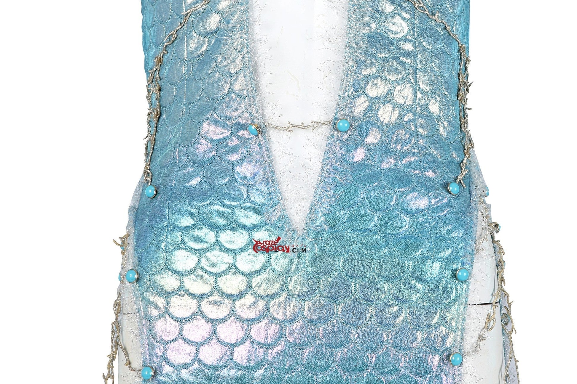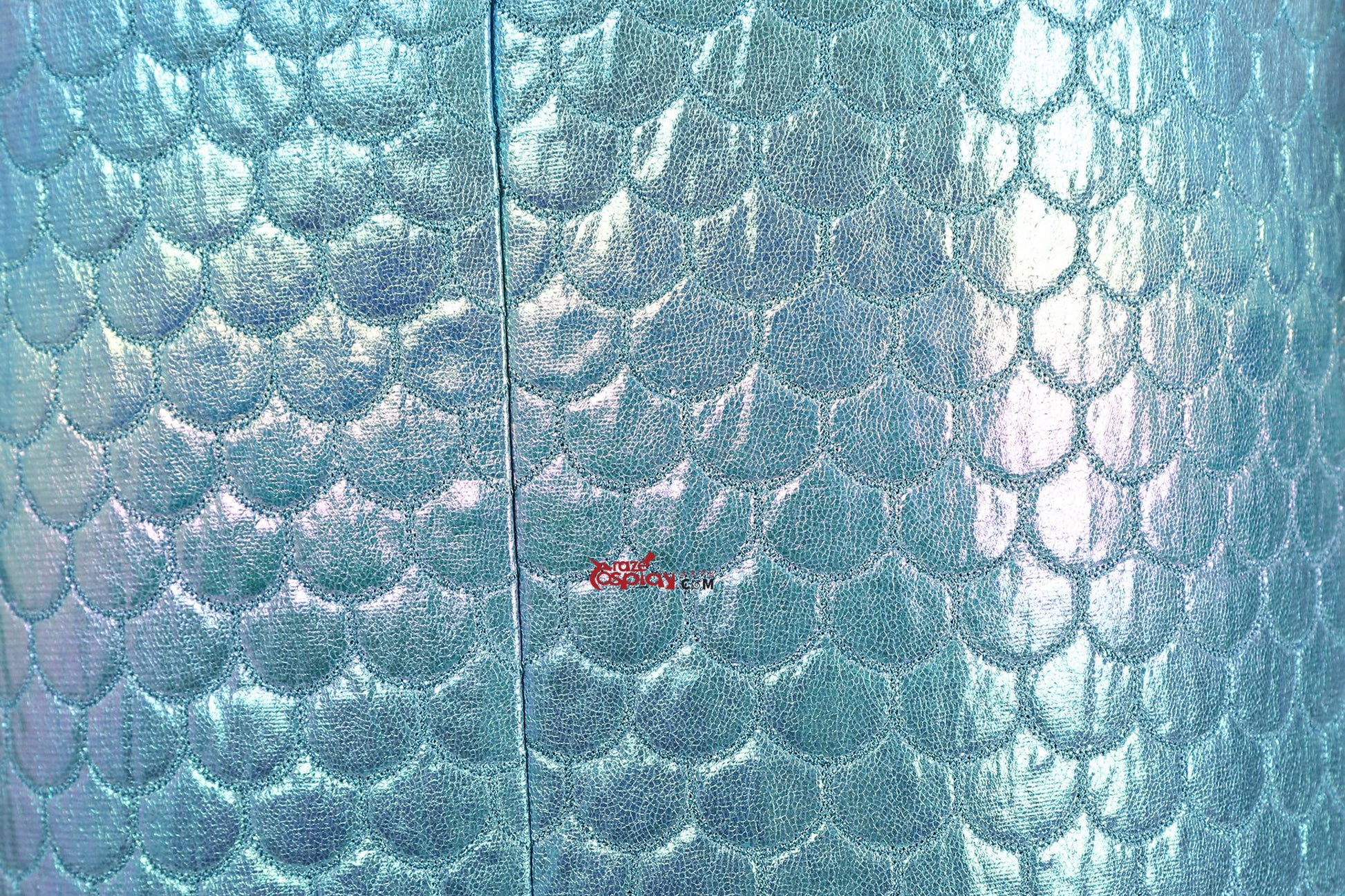Robe: Fish-scale textured padded fabric (non-stretch) + Spandex metallic-printed fabric (stretch) + Metallic crinkle mesh (slight stretch) + Taffeta (non-stretch) + Single-layer faux leather (non-stretch)