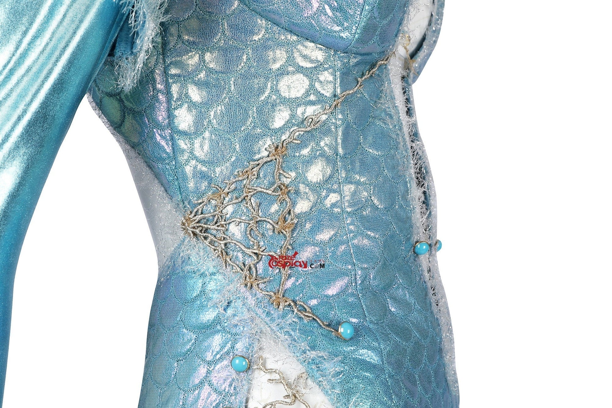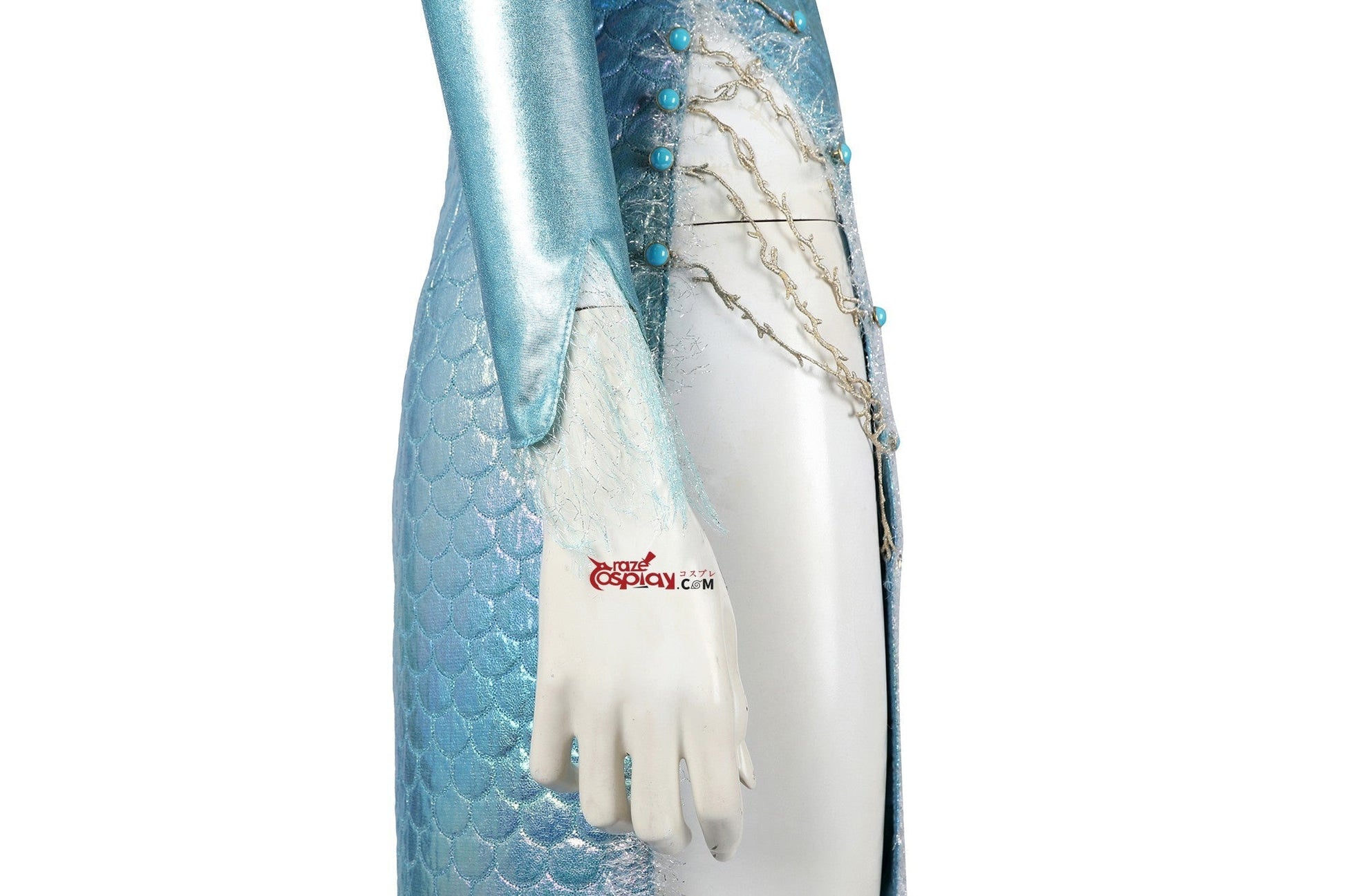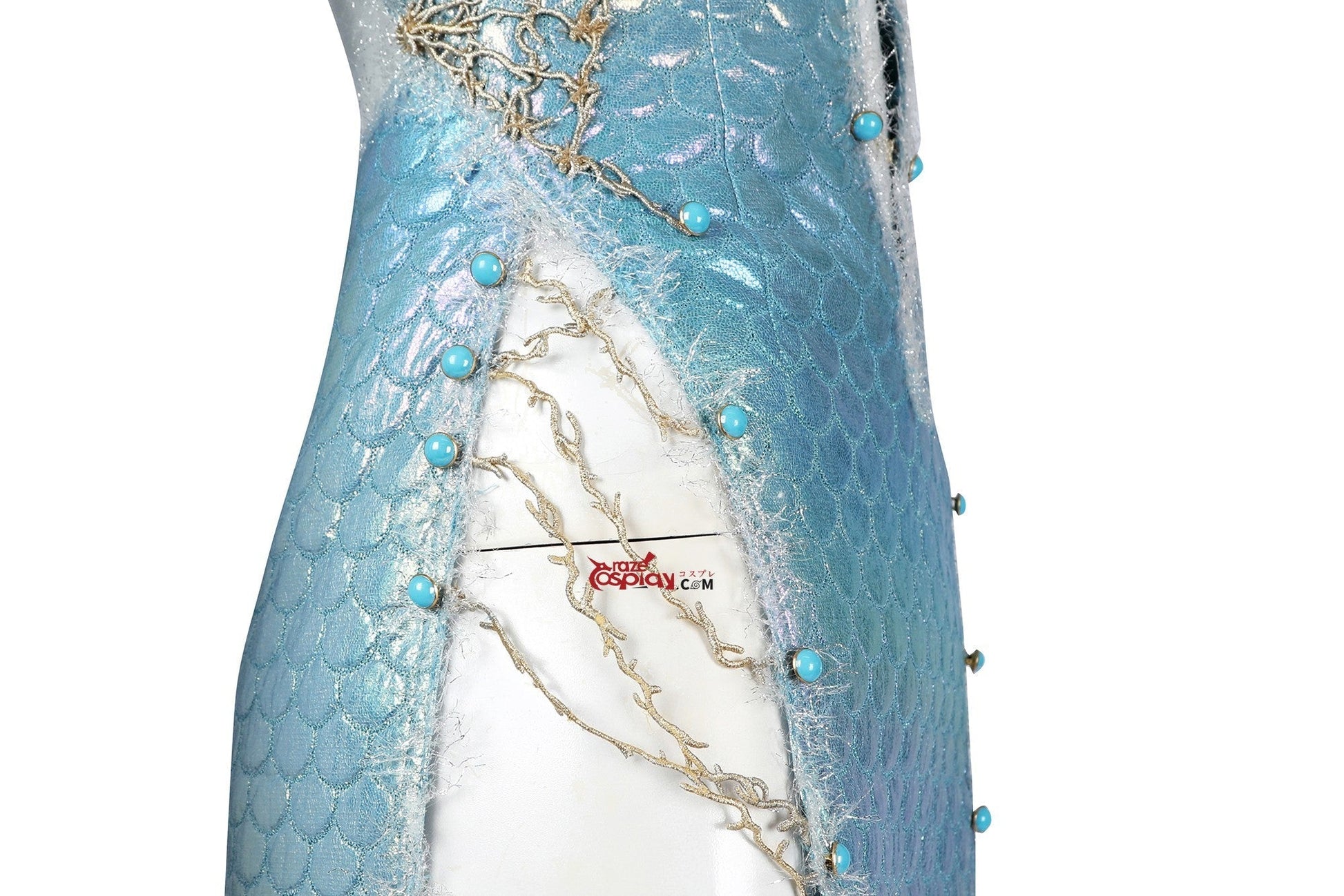 Robe: Fish-scale textured padded fabric (non-stretch) + Spandex metallic-printed fabric (stretch) + Metallic crinkle mesh (slight stretch) + Taffeta (non-stretch) + Single-layer faux leather (non-stretch)