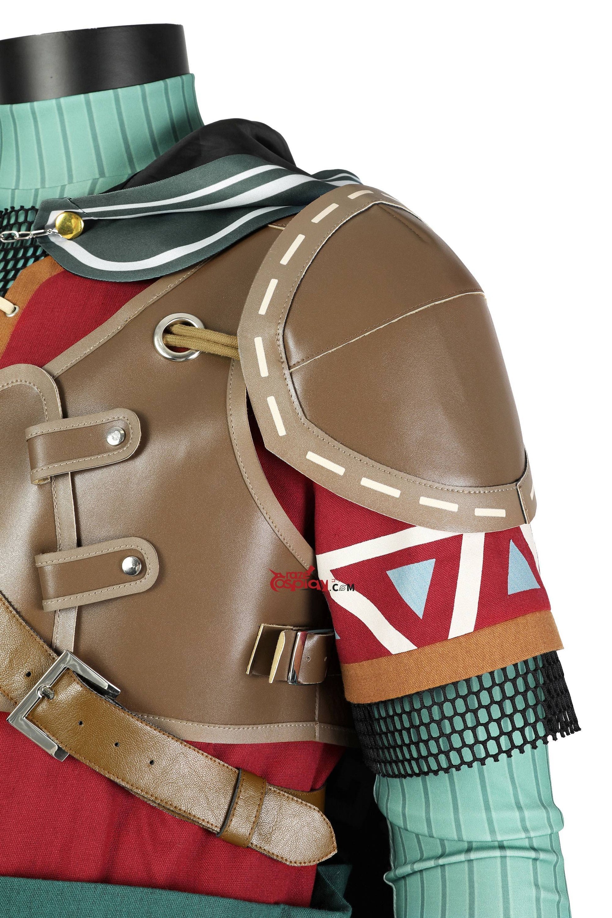 Vest/Bracers: Washed PU leather (non-stretch, battle-worn texture)