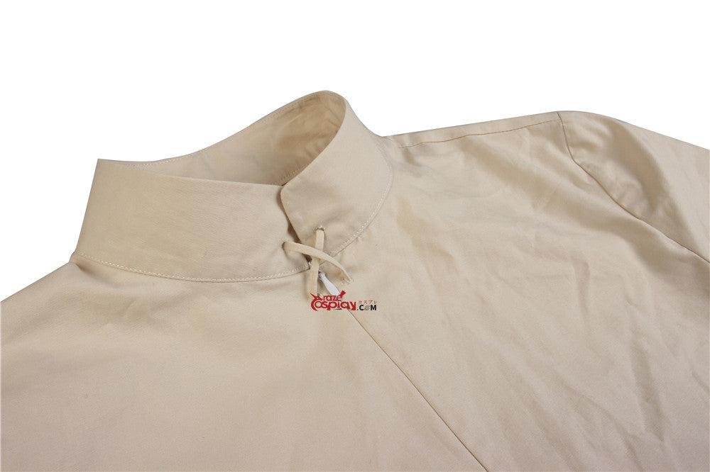 Slightly stretch twill (tunic/pants) for sword-swinging mobility.